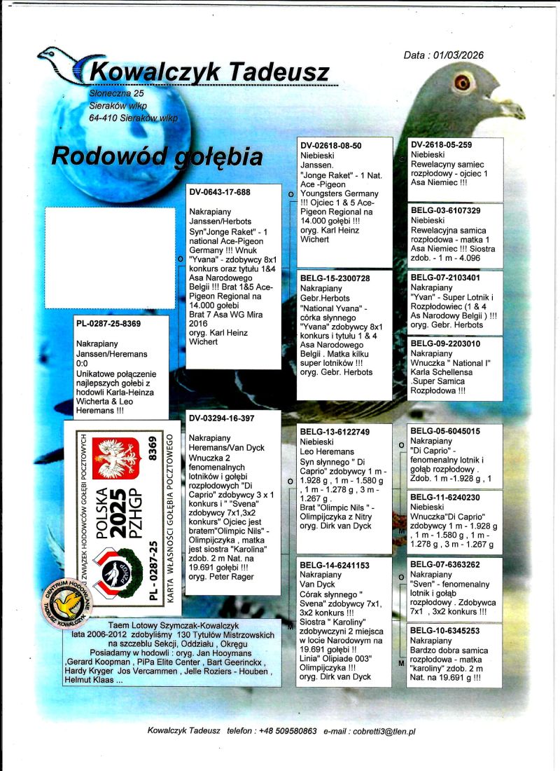 PL-0287-25-8369 Mega połączenie - Syn 1 Asa Niemiec & Wnuczka "Di Caprio" Leo Heremansa