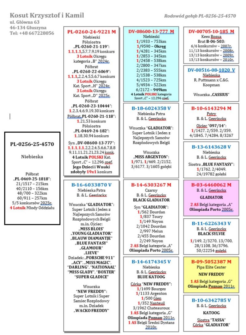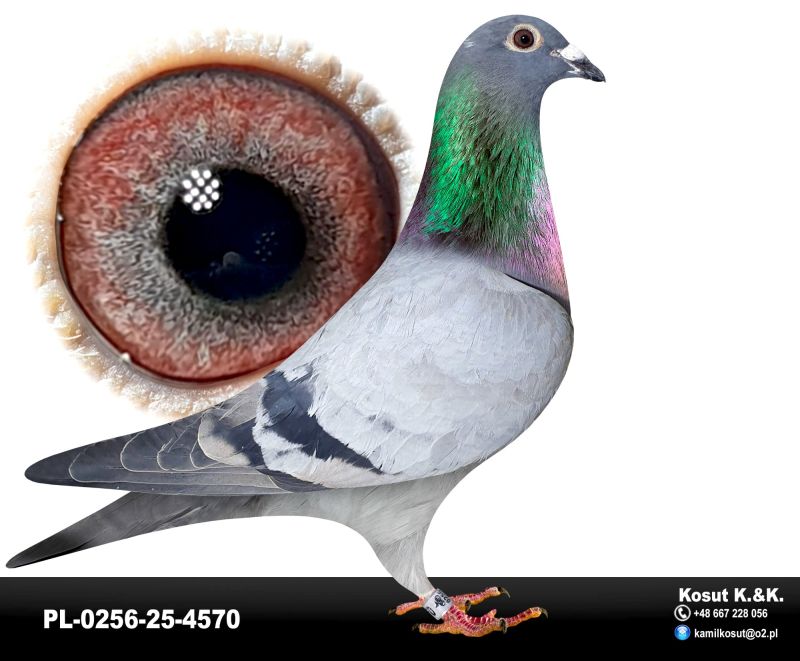 Oryginalny gołąb z hodowli Krzysztof i Kamil Kosut. Szczegóły pochodzenia w rodowodzie. Więcej informacji na stronie www.facebook.com/kosut.dobrahodowla oraz pod nr tel.: 667 228 056. Są To OSTATNIE Gołębie z rocznika 2025 na sprzedaż!! Dostawa gołębi będzie realizowana po zakończeniu aukcji kurierem 165zł lub odbiór osobisty. Możliwy jest także odbiór osobisty.