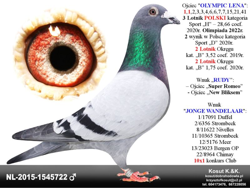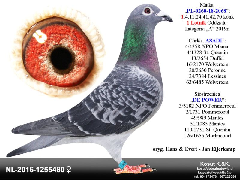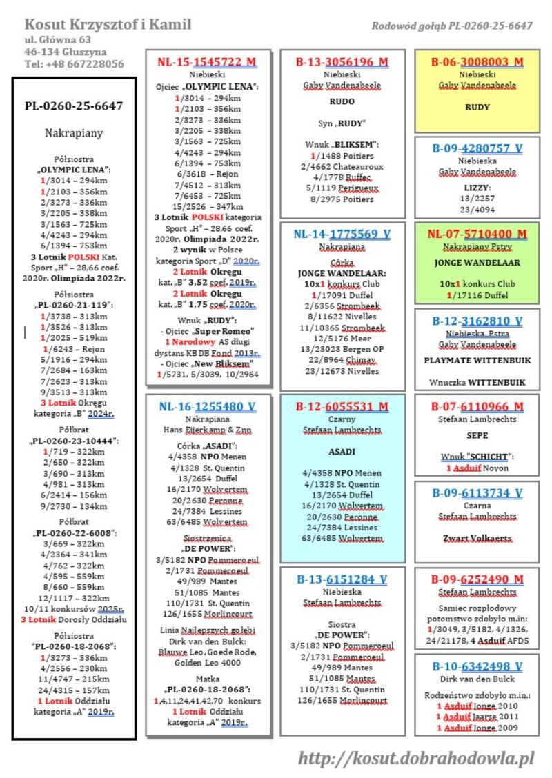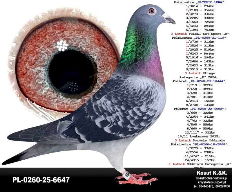 Oryginalny gołąb z hodowli Krzysztof i Kamil Kosut. Szczegóły pochodzenia w rodowodzie. Więcej informacji na stronie facebook.com/kosut.dobrahodowla oraz pod nr tel.: 667 228 056. Są To OSTATNIE Gołębie z rocznika 2025 na sprzedaż!! Dostawa gołębi będzie realizowana po zakończeniu aukcji kurierem 165zł lub odbiór osobisty. Możliwy jest także odbiór osobisty.