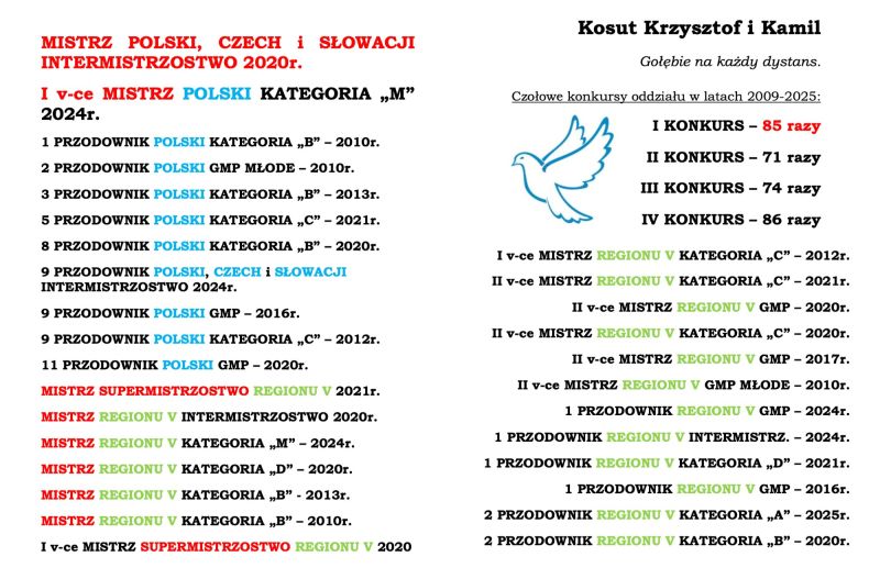 PL-0260-25-6647 - *TOP* Półrodzeństwo zdobyło m.in 1,1,1,1,1,1,1,1,1,1 konkurs oryg. Kosut K. & K. 85x1 konkurs Oddziału