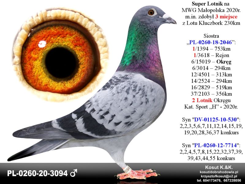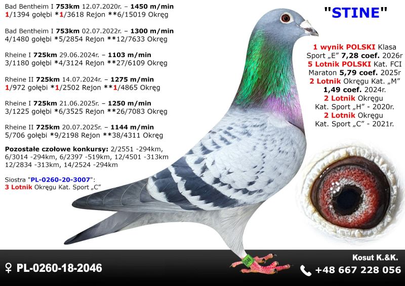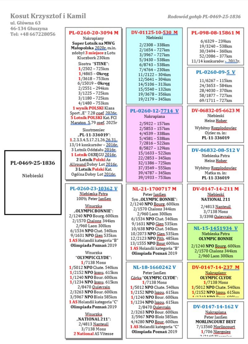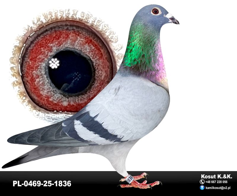 Oryginalny gołąb z hodowli Krzysztof i Kamil Kosut. Szczegóły pochodzenia w rodowodzie. Więcej informacji na stronie facebook.com/kosut.dobrahodowla oraz pod nr tel.: 667 228 056. Są To OSTATNIE Gołębie z rocznika 2025 na sprzedaż!! Dostawa gołębi będzie realizowana po zakończeniu aukcji kurierem 165zł lub odbiór osobisty. Możliwy jest także odbiór osobisty.