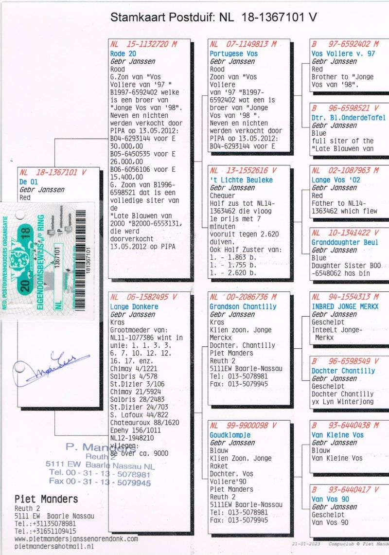 Matka Janssen Piet MandersVos Voliere v.97 – Inbred Jonge Merkx