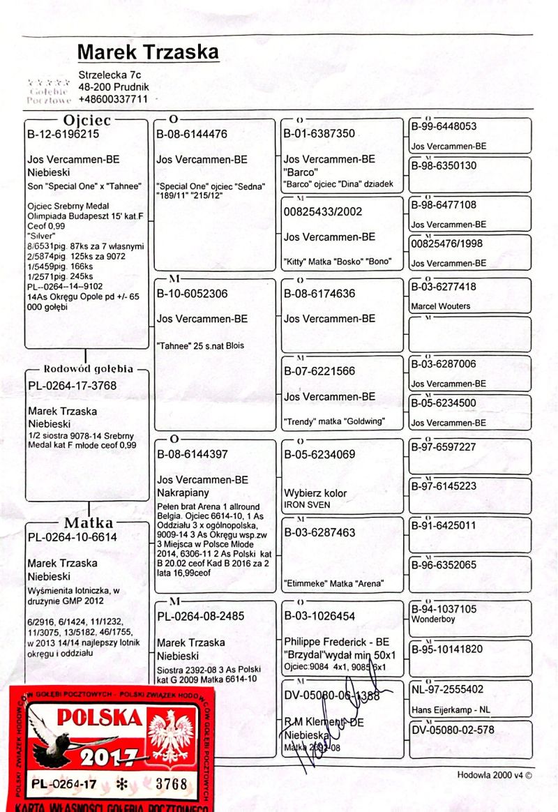 PL-0264-17-3768 Jos Vercammen – „Barco“ - „Specjal One“ - „Tahnee“ - „Kitty“ - „Trendy“