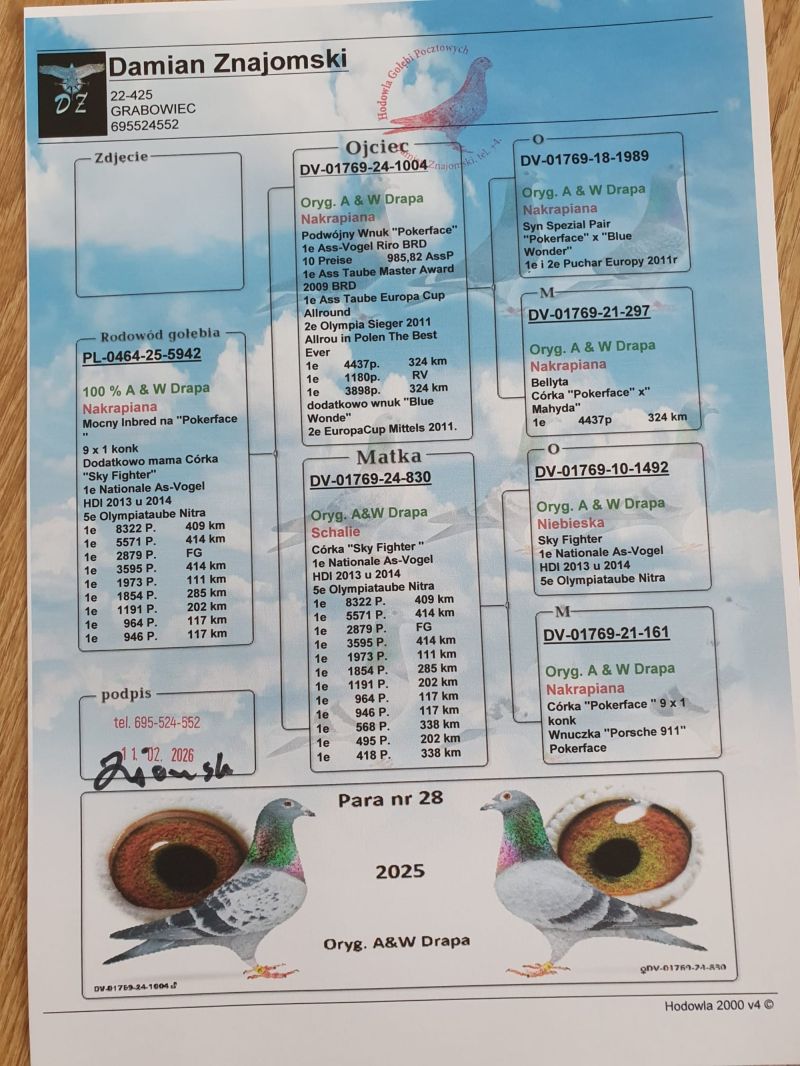 PL-0464-25-5942 Po Oryg. A&W Drapa Podwójny Wnuk "Pokerface" x Podwójna wnuczka "Pokerface " Córka Sky Faghter KUP TERAZ
