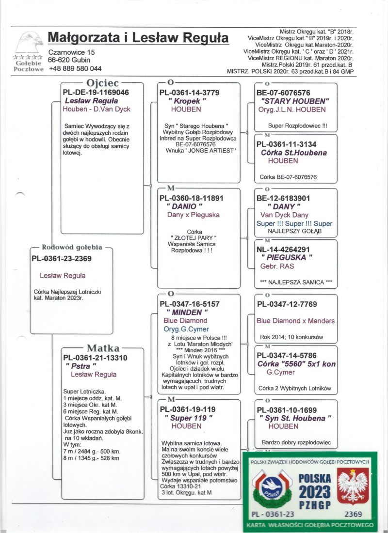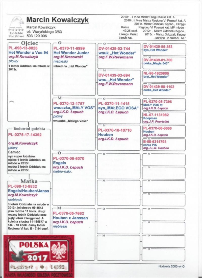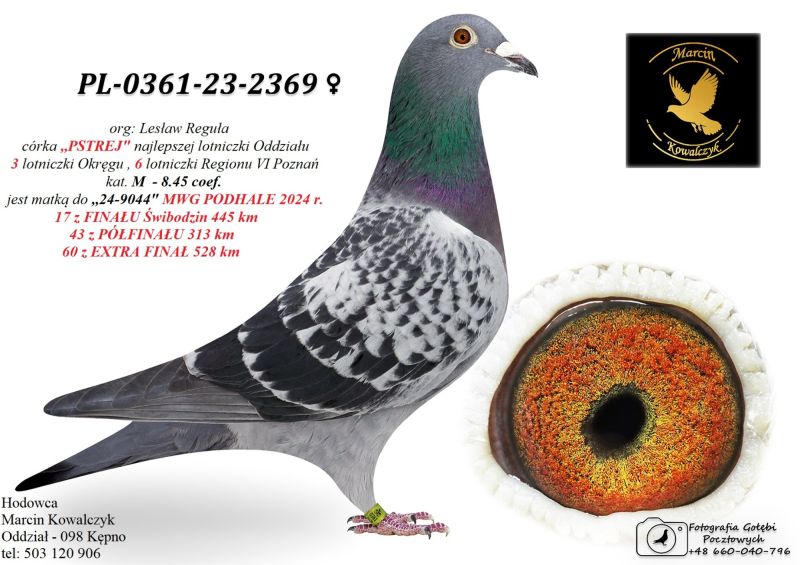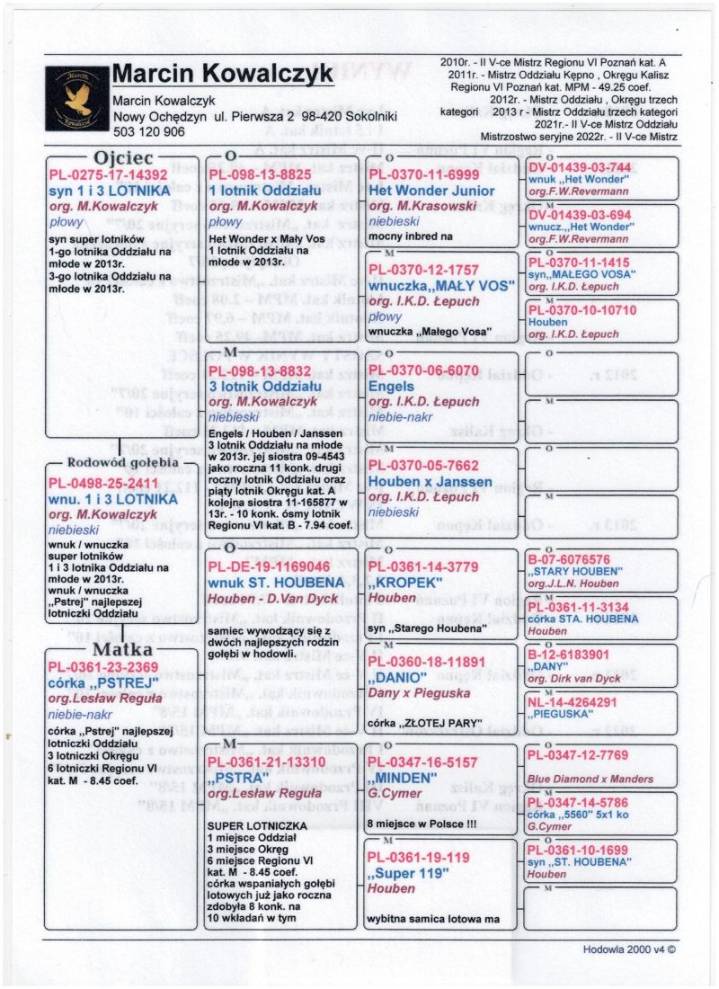 Oryginalny gołąb z hodowli Marcin Kowalczyk.# Szczegóły pochodzenia w rodowodzie. # Gołąb zaszczepiony przeciw Paramyxowirozie, Herpeswirus, Adenowirus , Ospa. # Więcej informacji pod nr tel. 503 120 906