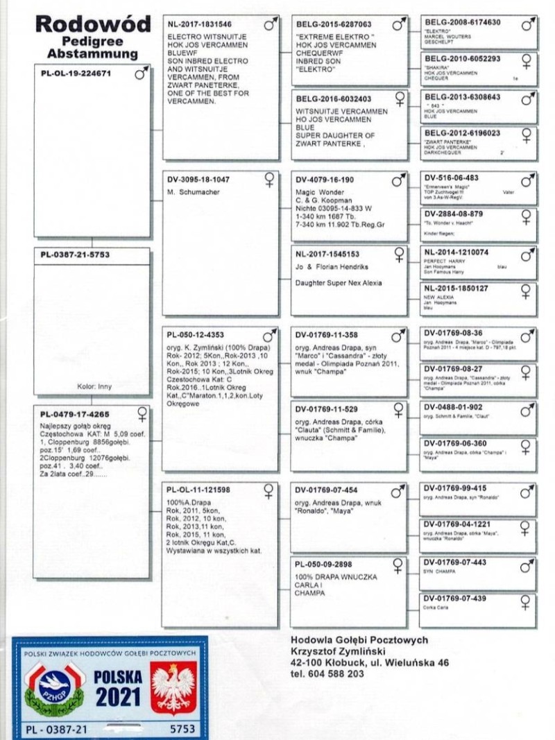 PL-0387-21-5753 - oryg. Krzysztof Zymliński syn 17-4265 bdb samica lotowo rozpłodowa