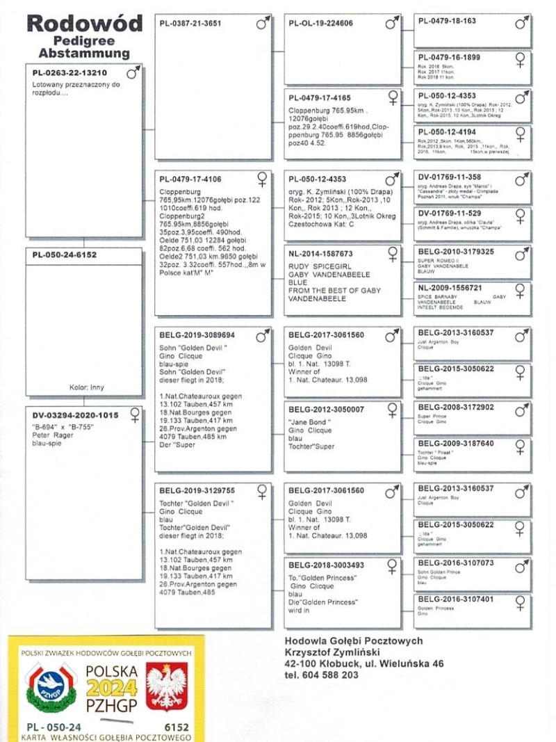 PL-050-24-6152 - oryg. Krzysztof Zymliński wnuk 17-4106 8 As Polski kat.E i prawnuk Płowa 4165 Brązowy Medal Olimpiada kat.E