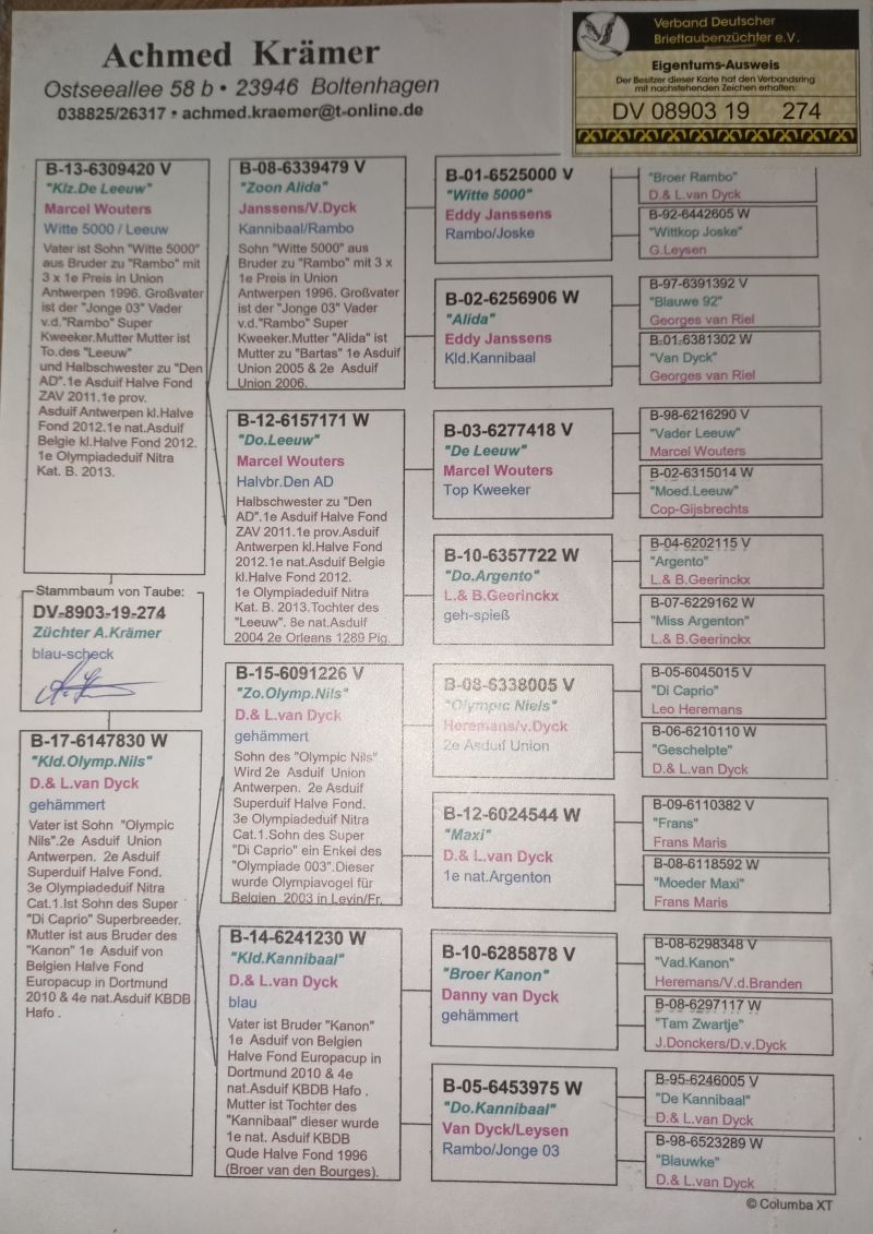 Oryginalny gołąb z hodowli Achmed Krämer. Szczegóły pochodzenia w rodowodzie. Więcej informacji pod nr tel.: 730602025 **Odbiór osobisty lub po uzgodnieniu transportu. ** Gołębie młode 2021rok 2 przodownik 7 z 50, 1 przodownik 10 z całości, 24 przodownik okręgu Kraków, 2022rok 2 przodownik 7 z 50, Vice Mistrz 10 z całości, 2023 rok 2 przodownik 10 z całości, 2 przodownik 10 z 50