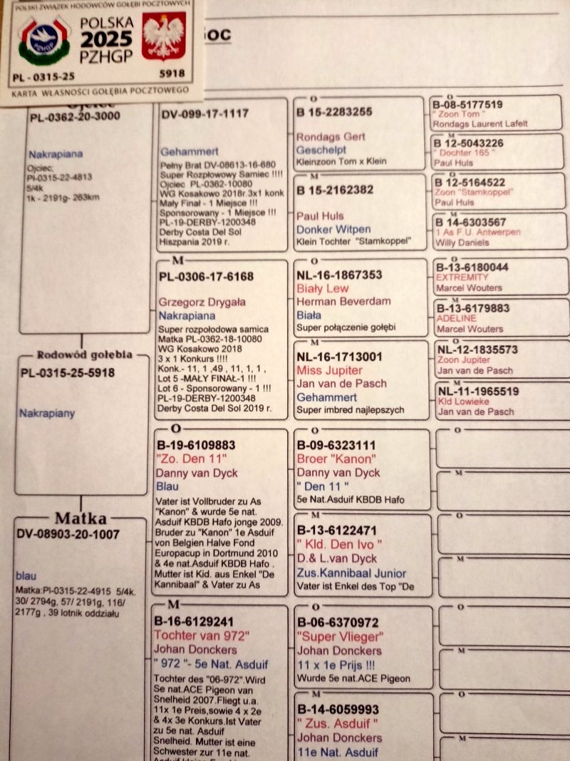 Oryginalny gołąb z hodowli Arkadiusz Goc. Szczegóły pochodzenia w rodowodzie. Więcej informacji pod nr tel.: 730602025 **Odbiór osobisty lub po uzgodnieniu transportu. ** Gołębie młode 2021rok 2 przodownik 7 z 50, 1 przodownik 10 z całości, 24 przodownik okręgu Kraków, 2022rok 2 przodownik 7 z 50, Vice Mistrz 10 z całości, 2023 rok 2 przodownik 10 z całości, 2 przodownik 10 z 50