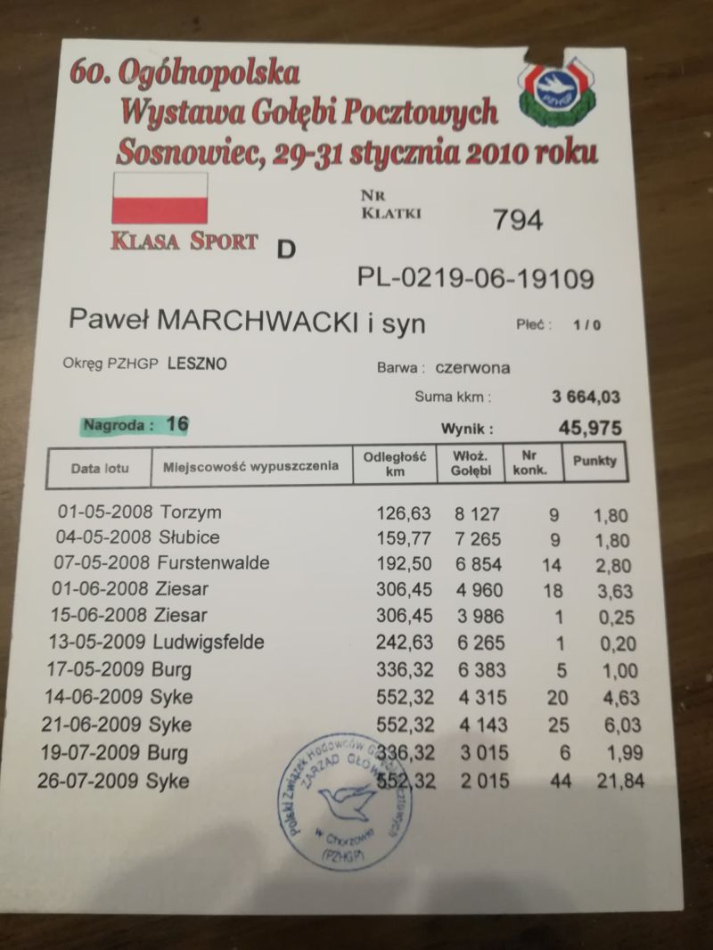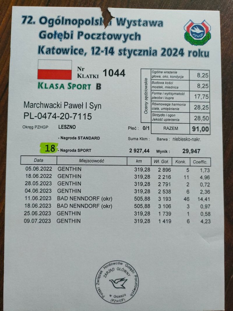 Płeć: młody gołąb Hodowca - rasa: oryg.Marchwacki Paweł i Syn Zakończenie: 17.03.2026 godz. 20:09