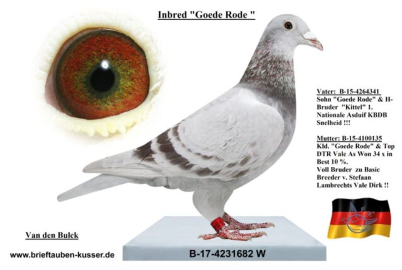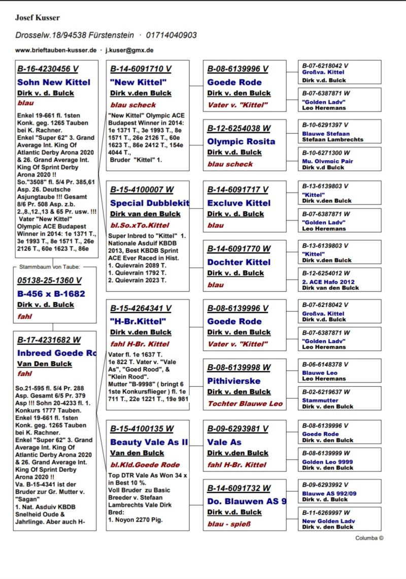 Oryginalny gołąb z hodowli kolegi Josef Kusser, najprawdopodobniej samczyk. Szczegóły pochodzenia w rodowodzie. Więcej informacji pod nr tel.: Josef Kusser +491714040903 Adrian +48692793463