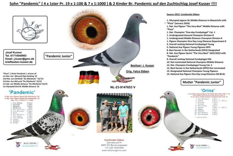 DV-05138-25-400 100% Falco Ebben/Strikker- Josef Kusser 4 miejsce w Niemczech gołębi młodych 2025!