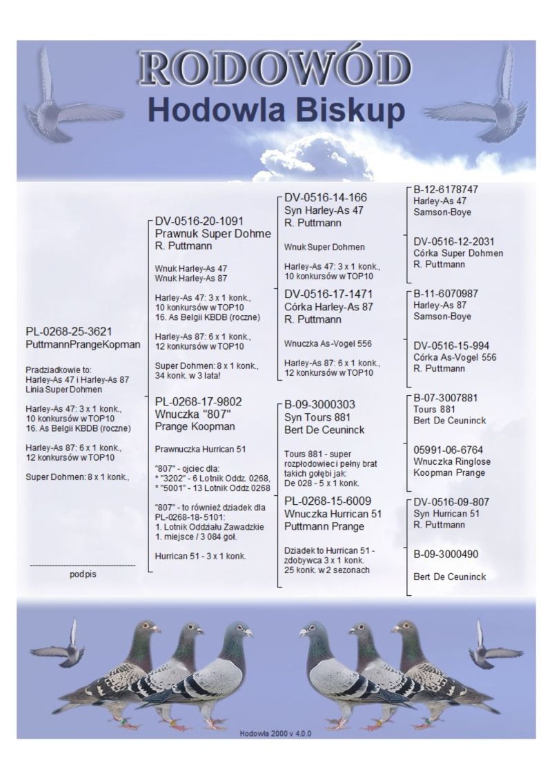 Pradziadkowie to: Harley-As 47 i Harley-As 87; Linia Super Dohmen; Harley-As 47: 3 x 1 konk., 10 konkursów w TOP10, 16. As Belgii KBDB (roczne); Harley-As 87: 6 x 1 konk.,