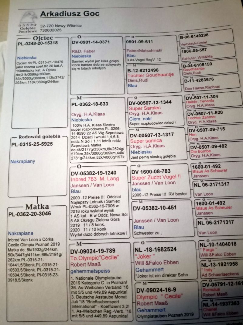 Oryginalny gołąb z hodowli Arkadiusz Goc. Szczegóły pochodzenia w rodowodzie. Więcej informacji pod nr tel.: 730602025 **Odbiór osobisty lub po uzgodnieniu transportu. ** Gołębie młode 2021rok 2 przodownik 7 z 50, 1 przodownik 10 z całości, 24 przodownik okręgu Kraków, 2022rok 2 przodownik 7 z 50, Vice Mistrz 10 z całości, 2023 rok 2 przodownik 10 z całości, 2 przodownik 10 z 50