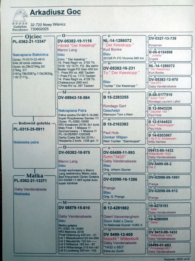 Oryginalny gołąb z hodowli Arkadiusz Goc. Szczegóły pochodzenia w rodowodzie. Więcej informacji pod nr tel.: 730602025 **Odbiór osobisty lub po uzgodnieniu transportu. ** Gołębie młode 2021rok 2 przodownik 7 z 50, 1 przodownik 10 z całości, 24 przodownik okręgu Kraków, 2022rok 2 przodownik 7 z 50, Vice Mistrz 10 z całości, 2023 rok 2 przodownik 10 z całości, 2 przodownik 10 z 50