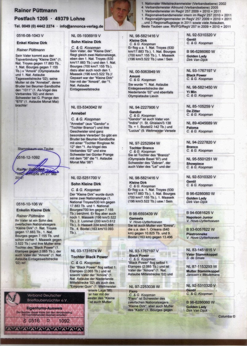 Oryginalny gołąb z Hodowla Gołębi K-G. Szczegóły pochodzenia w rodowodzie. Więcej informacji pod nr tel.: 500522211. **Transport po uzgodnieniu, lub odbiór osobisty.