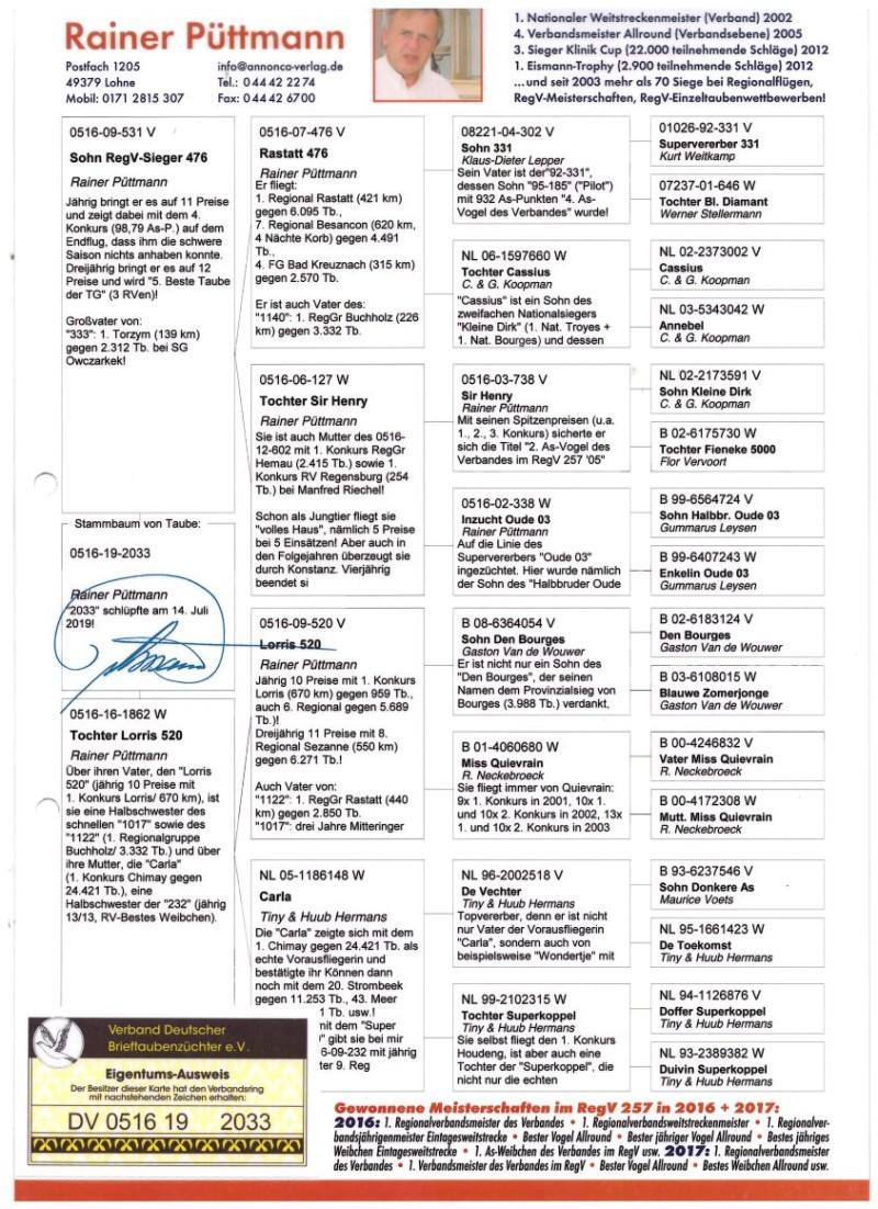DV-0516-19-2033 oryg. Rainer Puttmann, wybitne pochodzenie. Gen LDHA-AB
