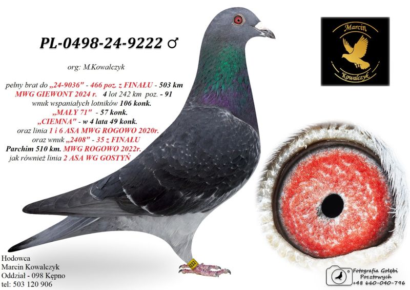 Oryginalny gołąb z hodowli Marcin Kowalczyk.# Szczegóły pochodzenia w rodowodzie. # Gołąb zaszczepiony przeciw Paramyxowirozie, Herpeswirus, Adenowirus , Ospa. # Więcej informacji pod nr tel. 503 120 906