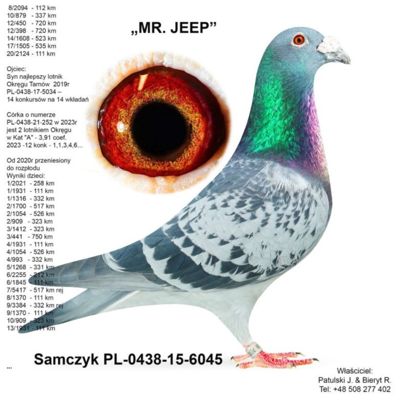 Sprzedam oryginalną pare Patulski & Bieryt rodzeństwa czołowych lotników oddziału i okręgu samiec podwójny wnuk złotej pary polecam do dalszej hodowli. Wysyłka 160zl