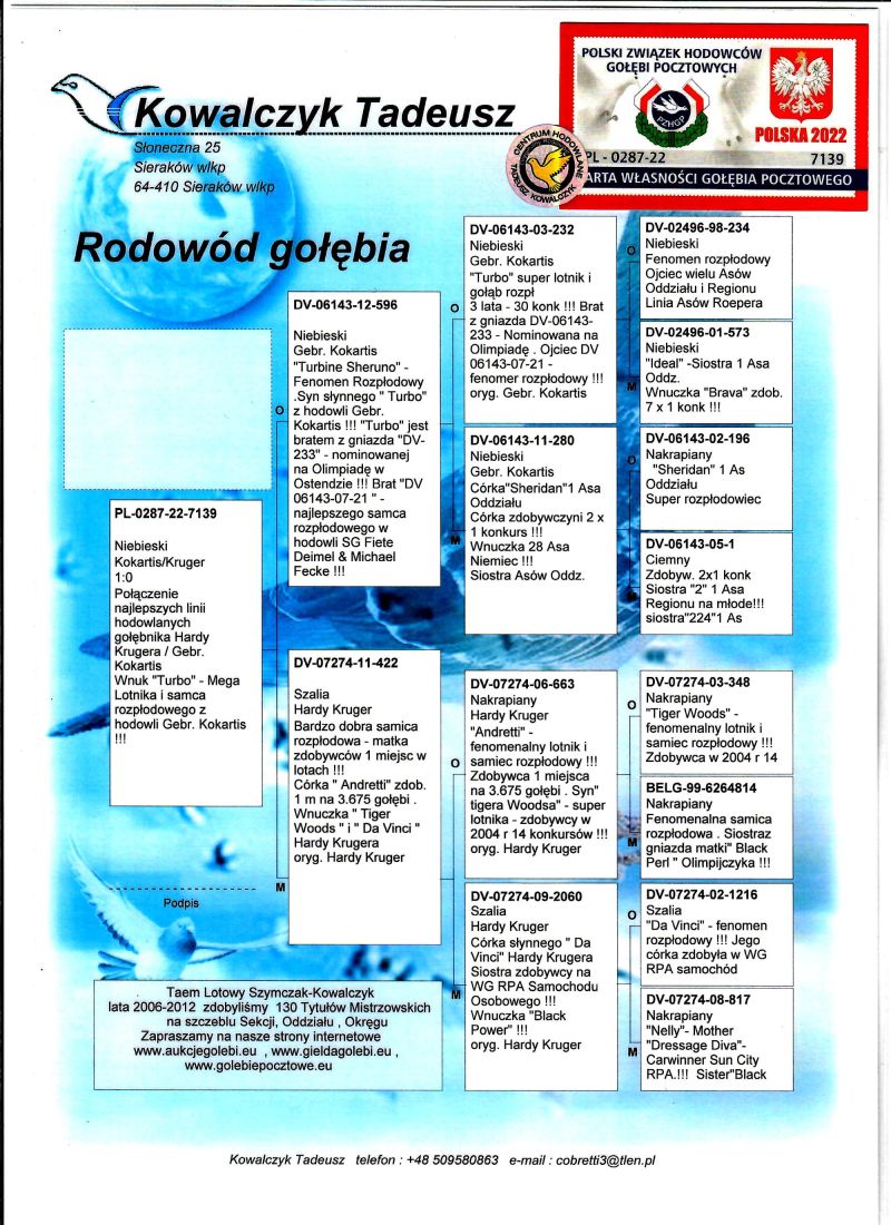 PL-0287-22-7139 Unikat - Mega połączenie gołębi z hodowli Gebr. Kokartis / Hardy Kruger