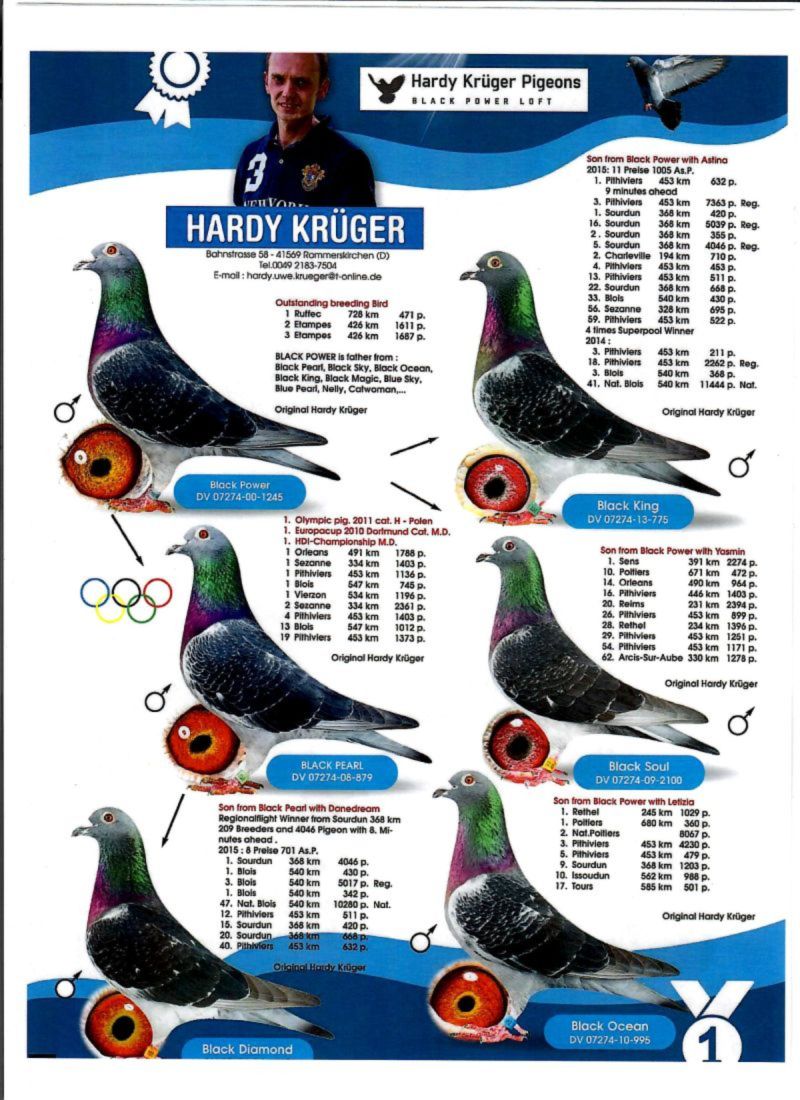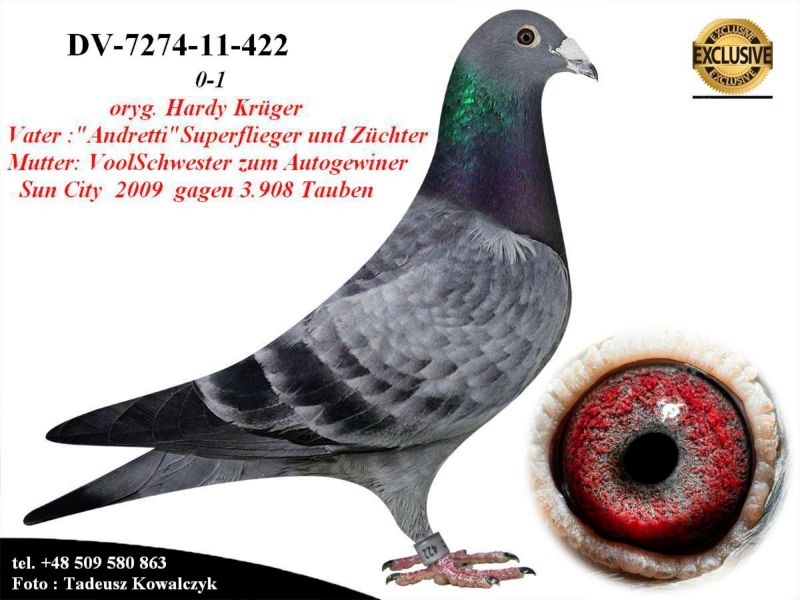 AUKCJA PROMOCYJNA (Cena obowiązuje wyłącznie na tej aukcji) Profesjonalna hodowla z wieloletnim doświadczeniem, posiadająca w swoim stadzie materiał najwyższej światowej klasy, wywodzący się od takich hodowców jak: Jan Hooymans, Gerard Koopman, Mike Ganus, Tjeerd & Jouke Elzinga, Gino Clicque, Jos Vercammen, Jelle Roziers, Bart Geerinckx, Batenburg – v/d Merwe, Altmiks – Pigeons, Jo & Florian Hendriks, Kornelis Winner Loft – linia „Romario”, W & F Ebben, Bert Braspenning, Dirk van den Bulck, Peter v/d Merwe, Jan van de Pasch, Van Elsacker-Jepsen, Roger Desmet – Matthijs, Arie Dijkstra, Leo Heremans, Pieter Veenstra, Gaby Vandenabeele, Karl-Heinz Wichert, Hardy Kruger, Helmut & Alfons Klaas, Gebr. Janssen. Najwyższej klasy materiał hodowlany – najlepsze linie danych Hodowców. Wszystkie wylicytowane gołębie będą dostarczane firmą kurierską.