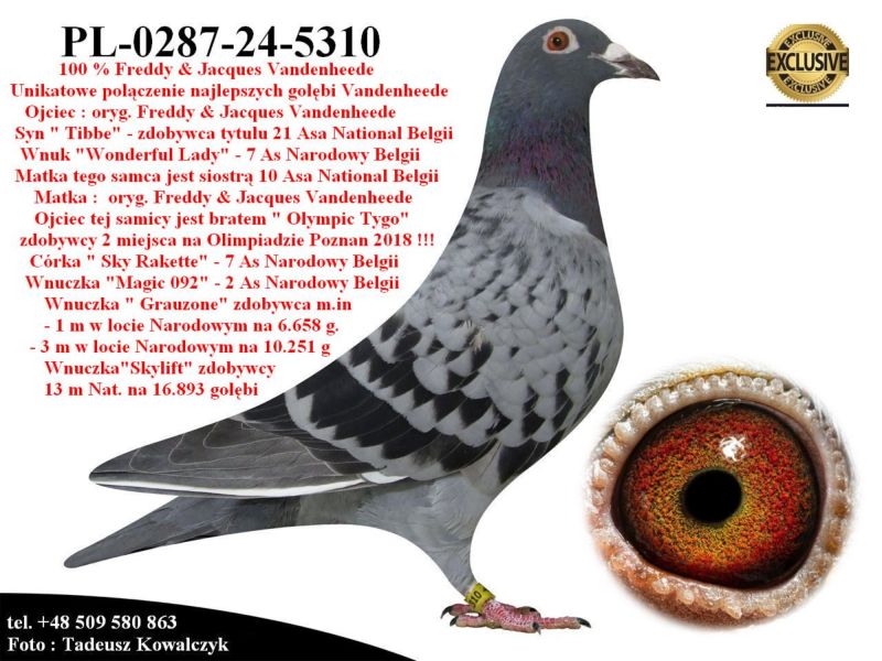 PL-0287-24-5310 Potomek najlepszych gołębi z hodowli F.& J. Vandenheede