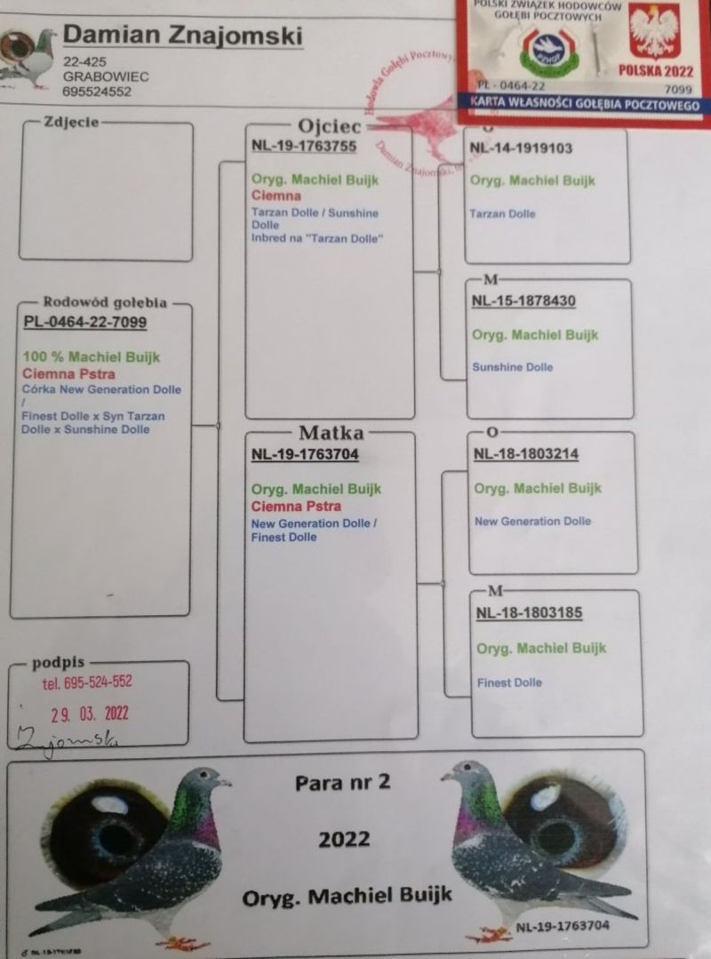 Płeć: młody gołąb Hodowca - rasa: Oryg Czuba Zbigniew Zakończenie: 7.04.2026 godz. 20:15
