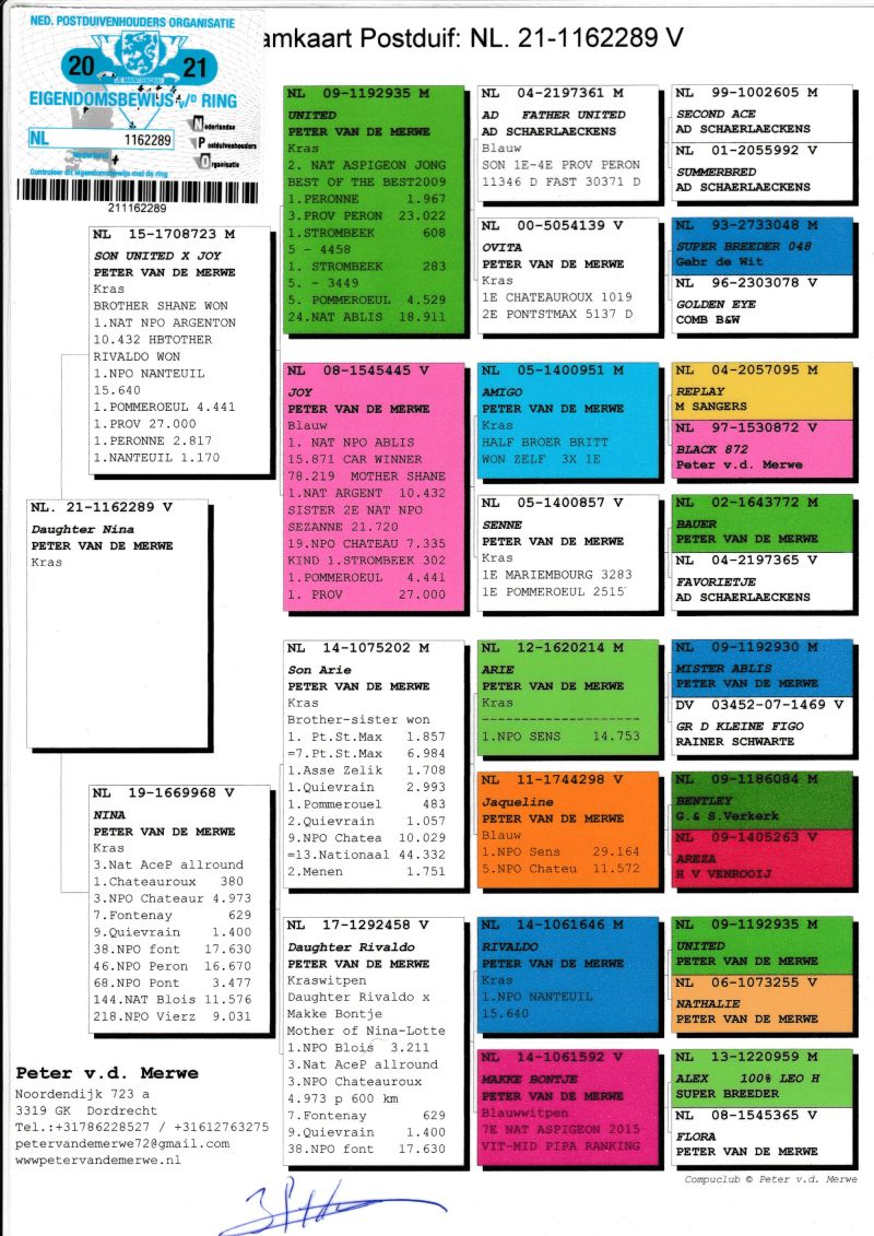 Oryginalny gołąb z hodowli Peter van de Merwe, szczegóły pochodzenia w rodowodzie. Dostawa gołębi będzie realizowana po zakończeniu aukcji przez kuriera - ok. 150zł. Gołębie nie będą sprzedawane poza aukcją!