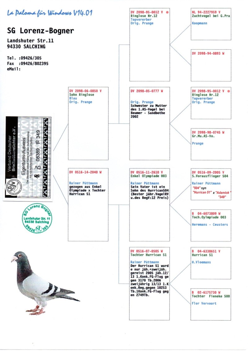Oryginalny gołab z hodowli SG Lorenz-Bogner. Szczegóły pochodzenia w rodowodzie. Więcej informacji pod nr tel.: 500522211. Transport po uzgodnieniu, lub odbiór osobisty.