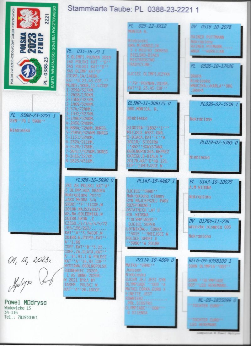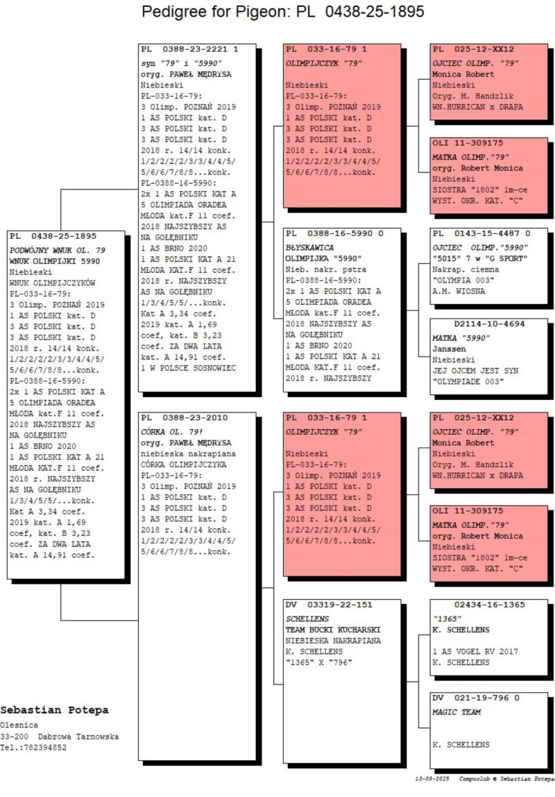 PL-0484-25-1895 - oryg. S. Potępa (100% P. Mędrysa) podwójny wnuk olimp 79, wnuk olimp 5990!!