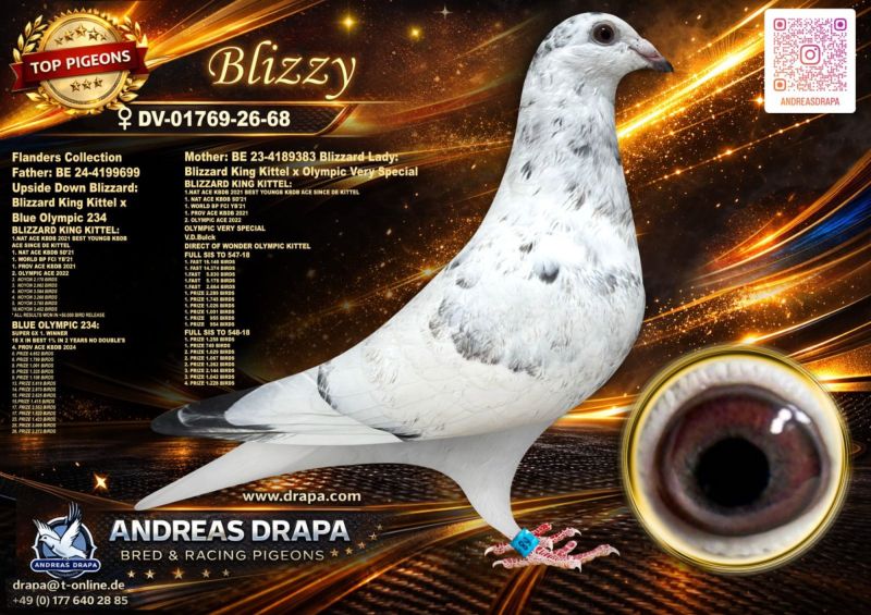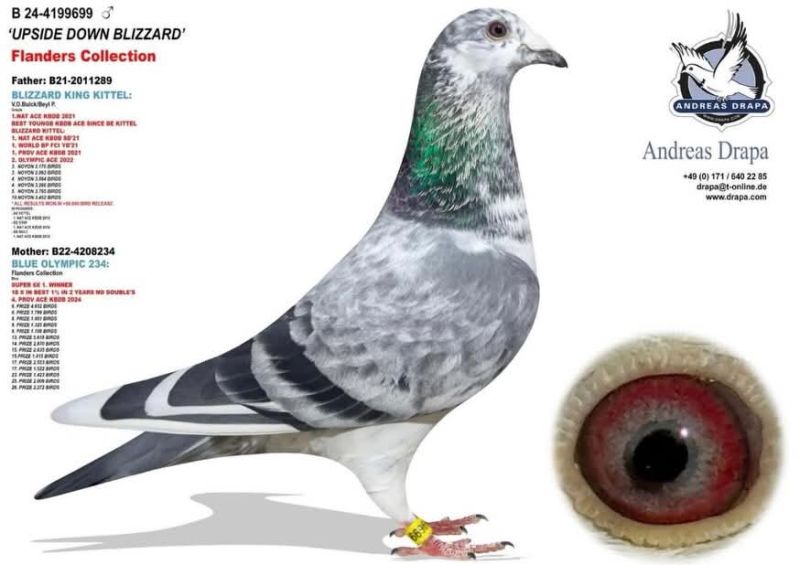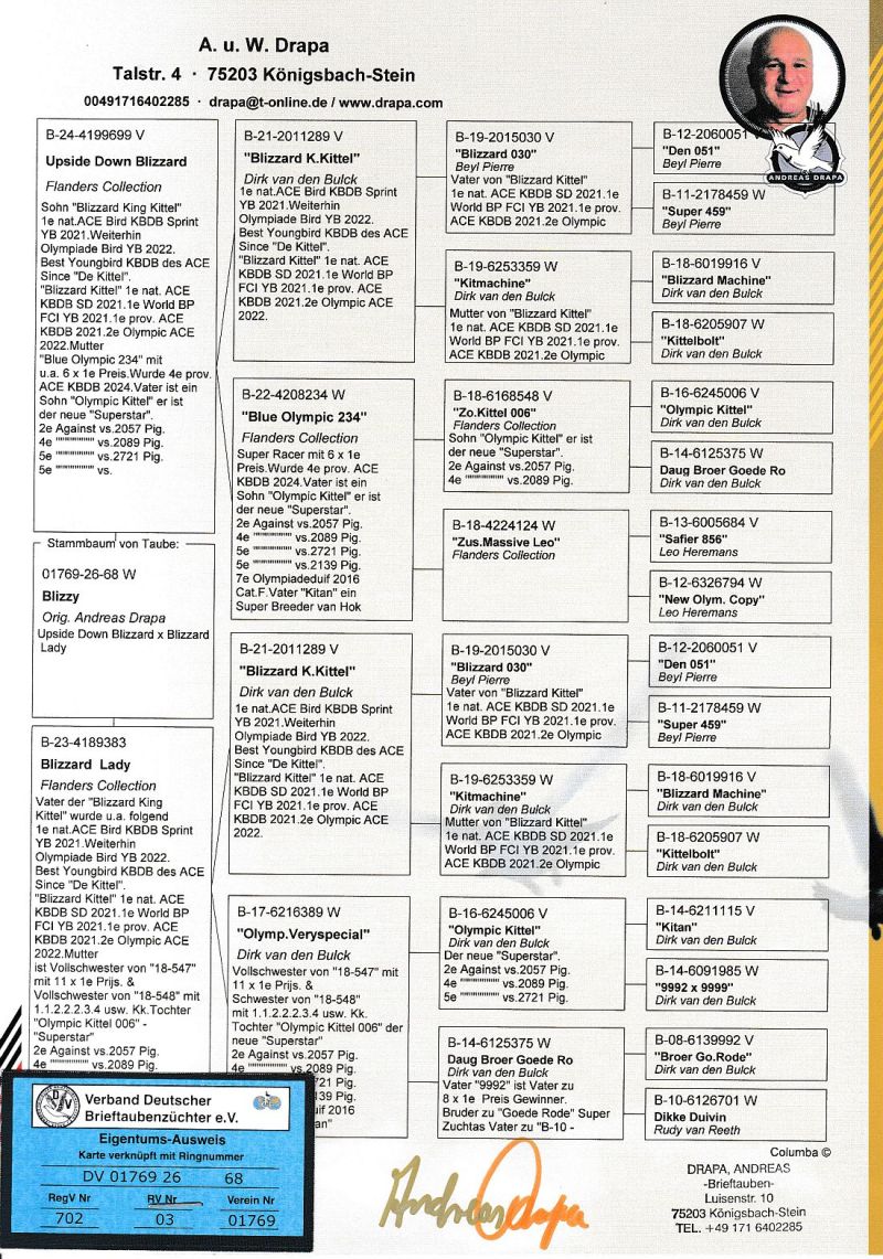 ***UWAGA PODBICIE NA TEJ AUKCJI WYNOSI 50 ZŁ*** Oryginalny gołąb z hodowli Andreasa Drapy. Szczegóły pochodzenia w rodowodzie. Gołąb jest własnością Andreasa Drapy, a w tej chwili znajduje się już w Polsce u kol. Robert Grochowskiego, gdzie można go obejrzeć przed zakończeniem aukcji, po wcześniejszym kontakcie telefonicznym.