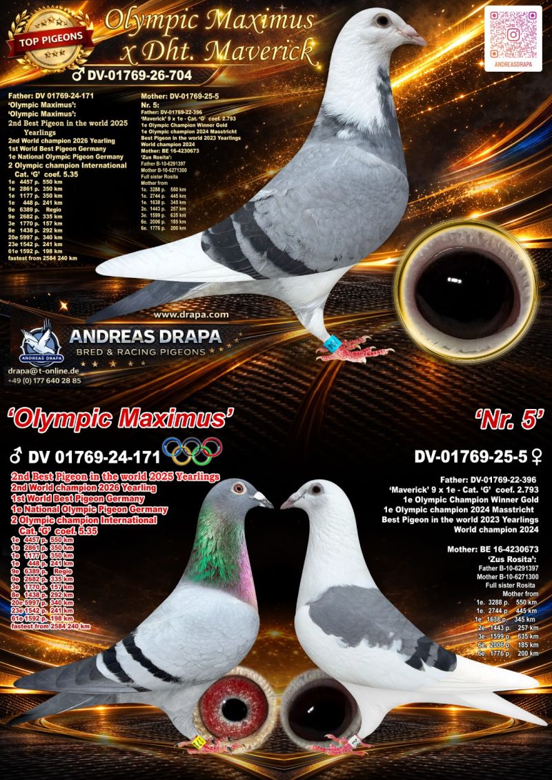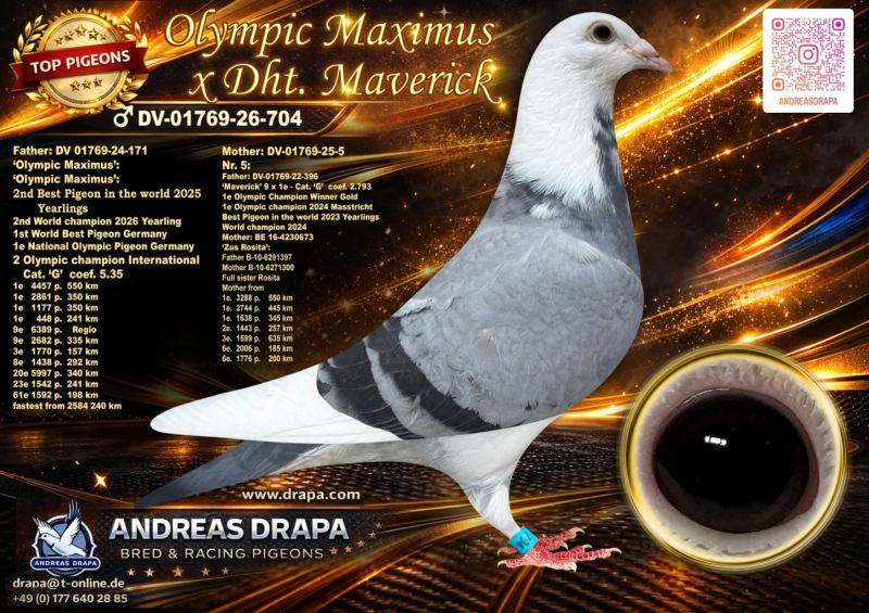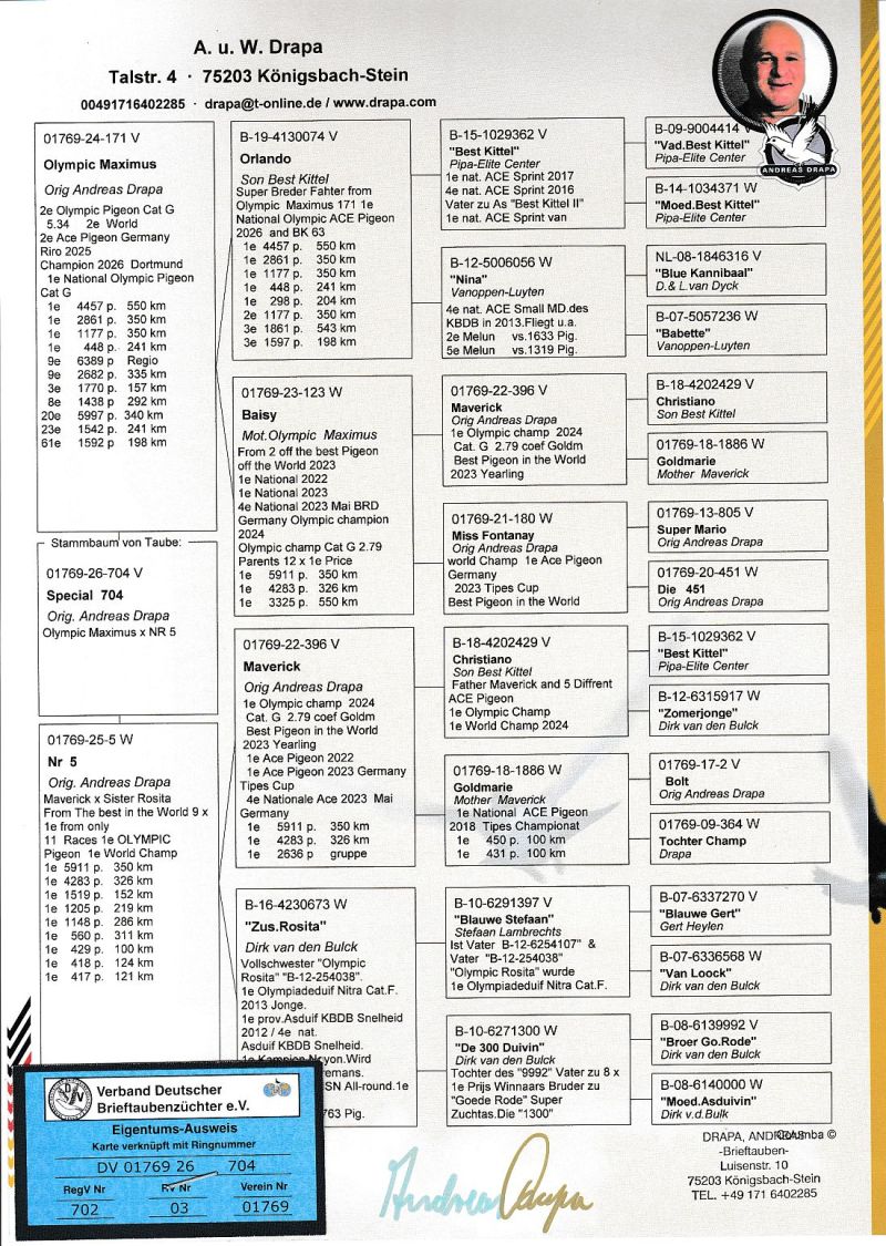 ***UWAGA PODBICIE NA TEJ AUKCJI WYNOSI 50 ZŁ*** Oryginalny gołąb z hodowli Andreasa Drapy. Szczegóły pochodzenia w rodowodzie. Gołąb jest własnością Andreasa Drapy, a w tej chwili znajduje się już w Polsce u kol. Robert Grochowskiego, gdzie można go obejrzeć przed zakończeniem aukcji po wcześniejszym kontakcie telefonicznym.