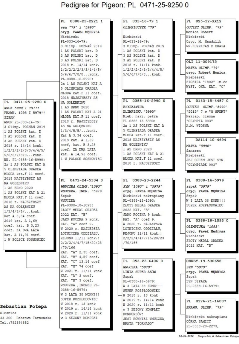 PL-0471-25-9250 - oryg. S. Potępa (100% P. Mędrysa) WNUCZKA OLIMPIJCZYKÓW 5990 i 79!!!