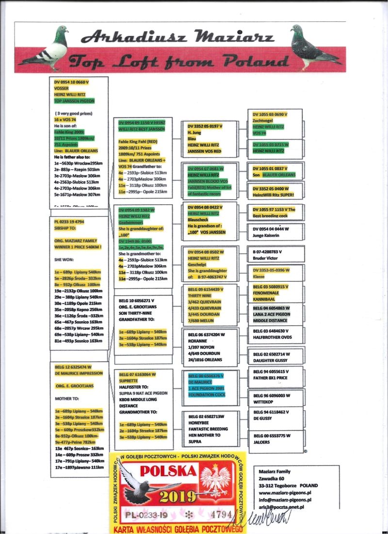 Płeć: samiec Hodowca - rasa: Oryg. Maziarz Racing Team Zakończenie: 15.04.2026 godz. 20:35