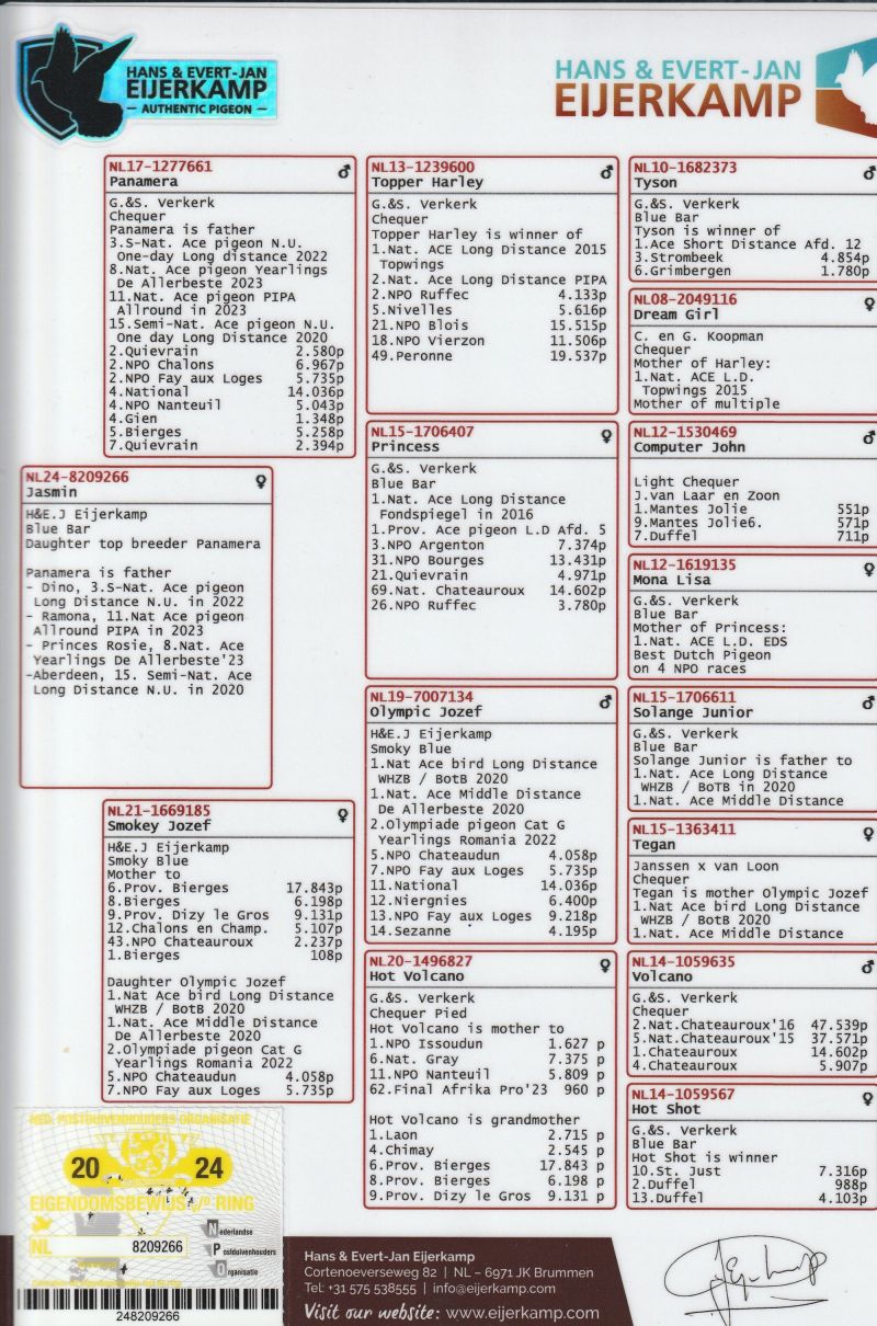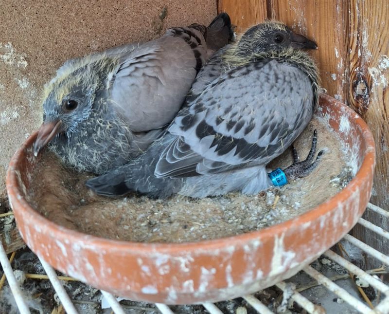 Młody gołąb 100% Hans & Evert-Jan Eijerkamp. Licytacja dotyczy jednego młodego z gniazda.