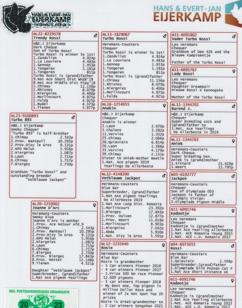 Płeć: młody gołąb Hodowca - rasa: Hans Evert-Jan Eijerkamp Zakończenie: 21.04.2026 godz. 20:00