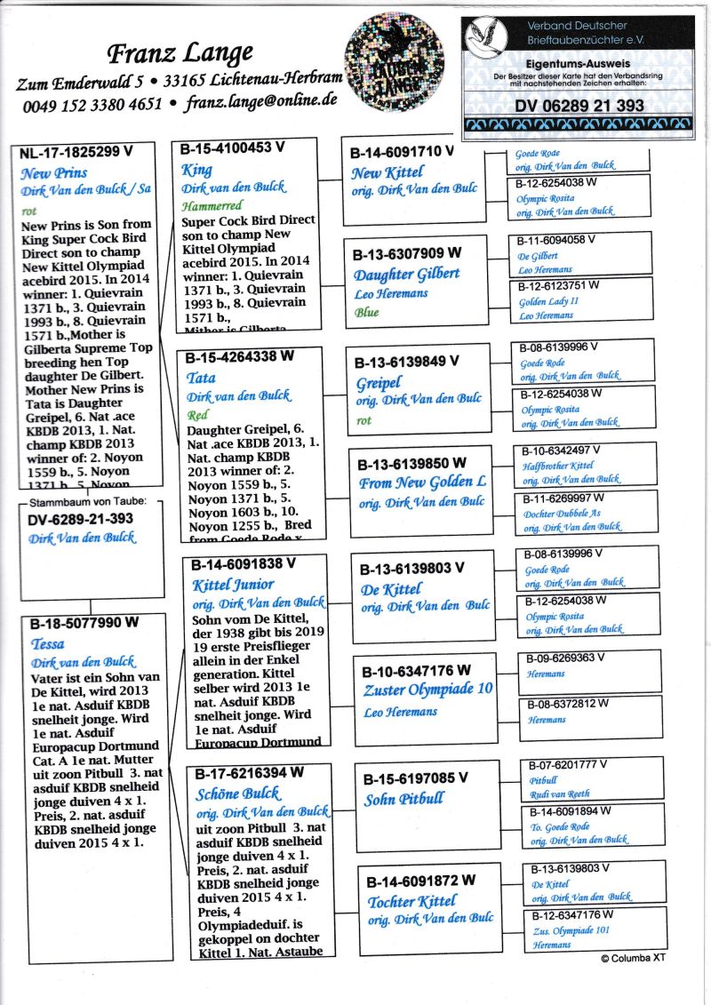 Szczegóły pochodzenia w rodowodzie. Możliwość wysyłki gołębi. Więcej informacji pod nr tel. 504780725