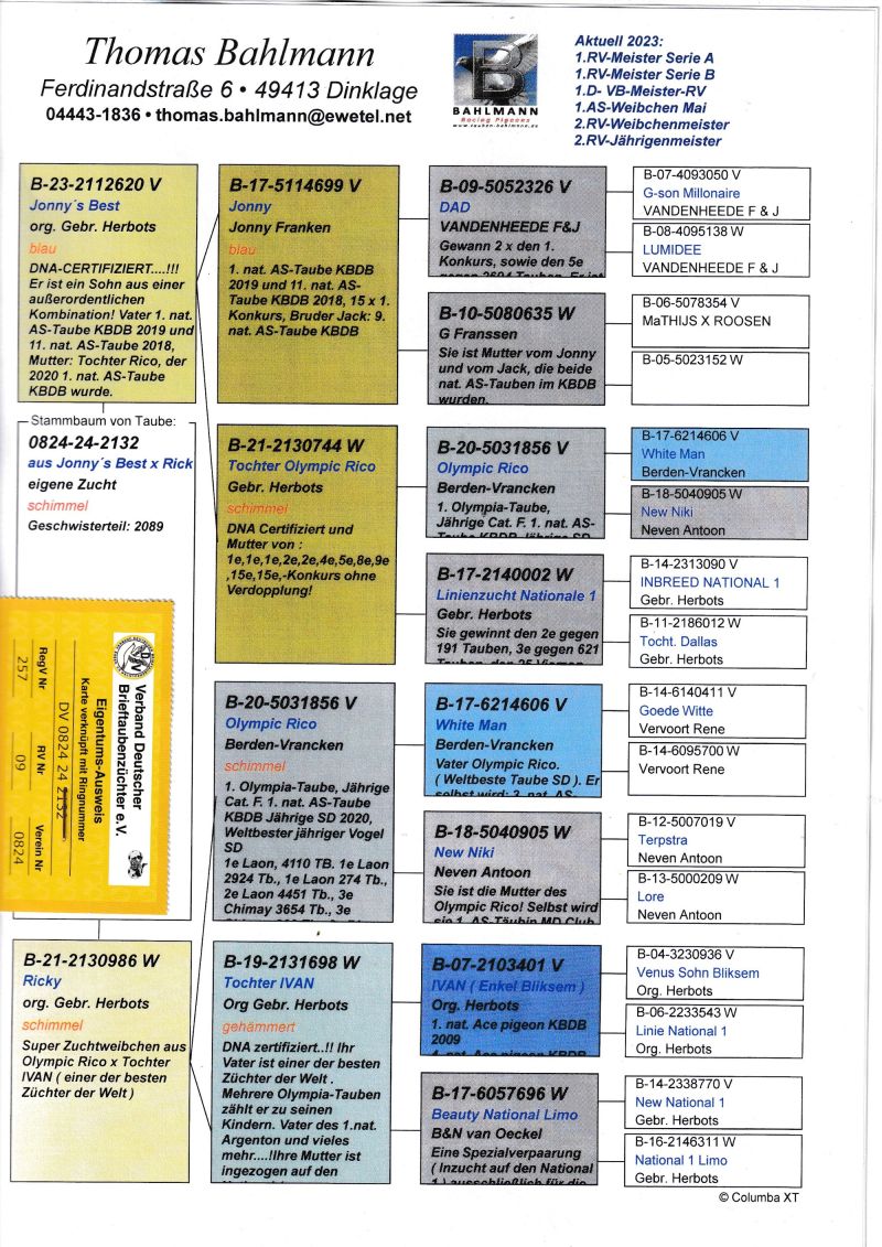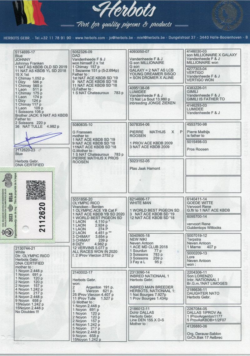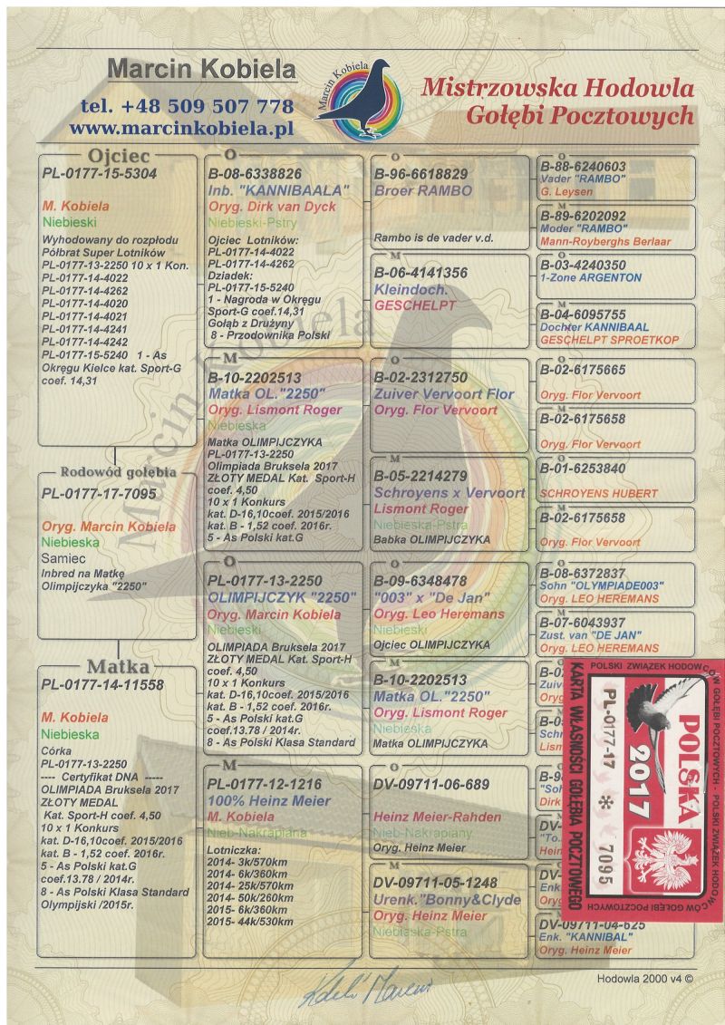 Szczegóły pochodzenia w rodowodzie. Możliwość wysyłki gołębi. Więcej informacji pod nr tel. 504780725