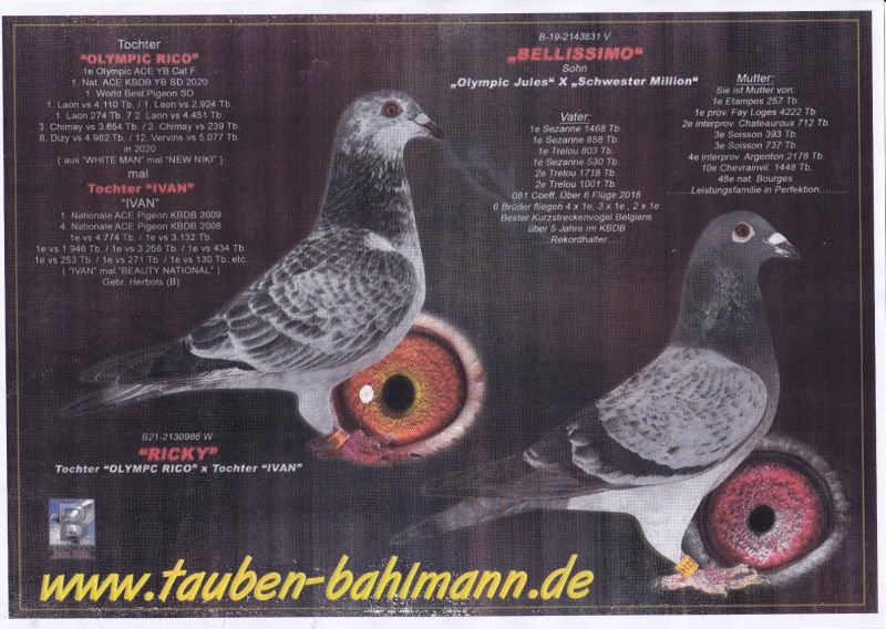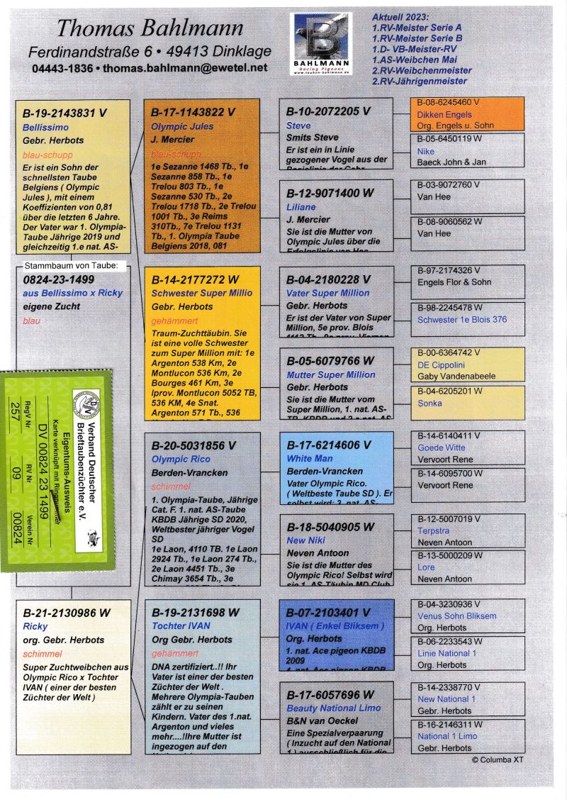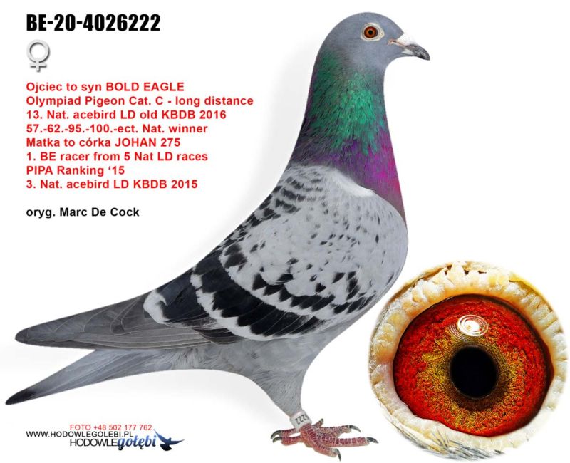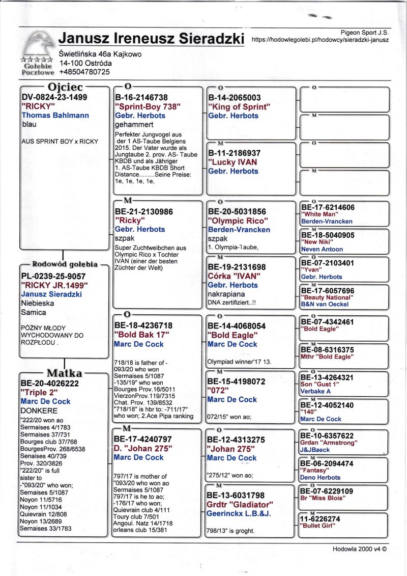 Szczegóły pochodzenia w rodowodzie. Możliwość wysyłki gołębi. Więcej informacji pod nr tel. 504780725