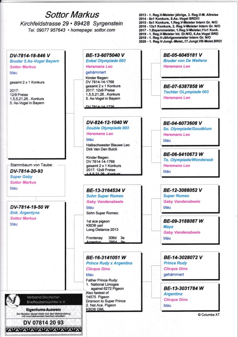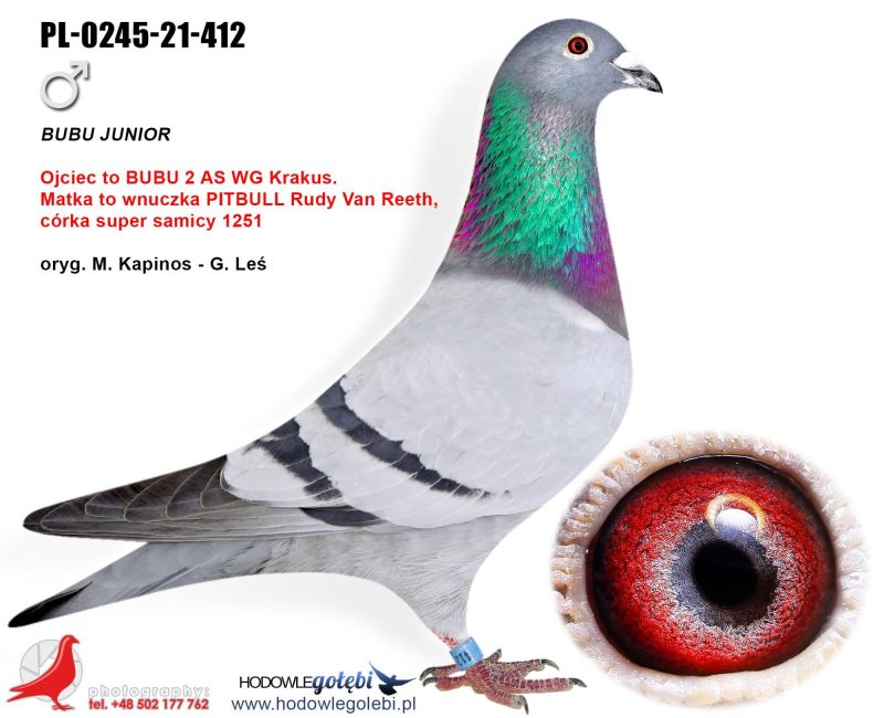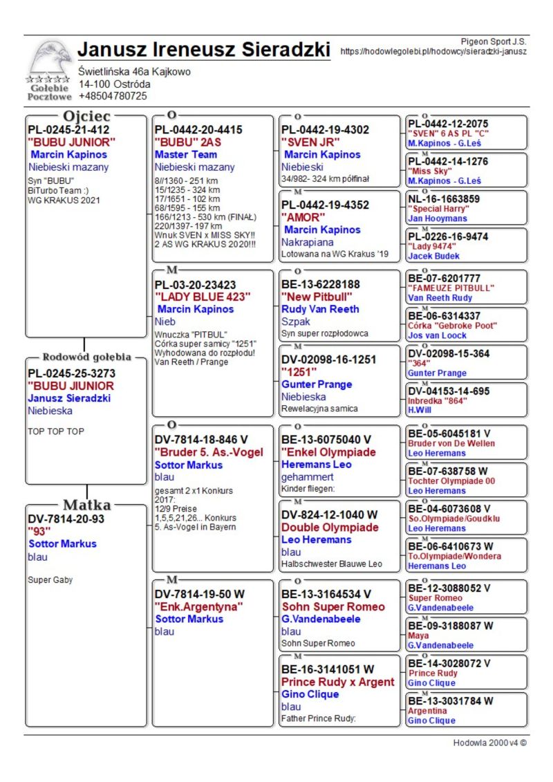 Szczegóły pochodzenia w rodowodzie. Możliwość wysyłki gołębi. Więcej informacji pod nr tel. 504780725