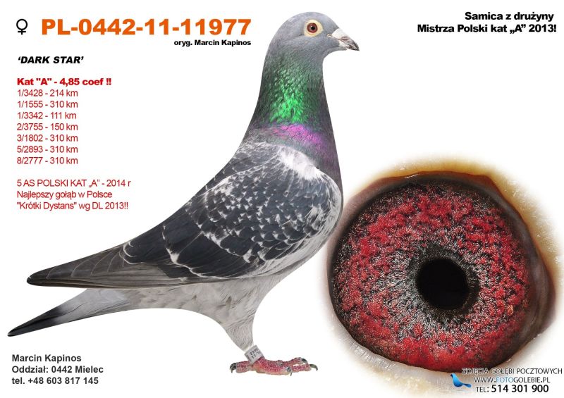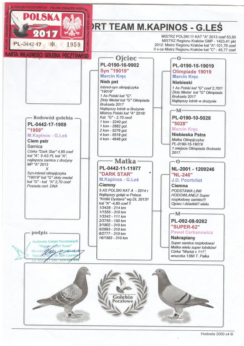 PL-0442-17-1959 oryg. M.Kapinos - Inbred-syn olimpijczyka "19019" x "Dark Star" 4,85 coef kat "A". 5 AS PL kat "A" !!!