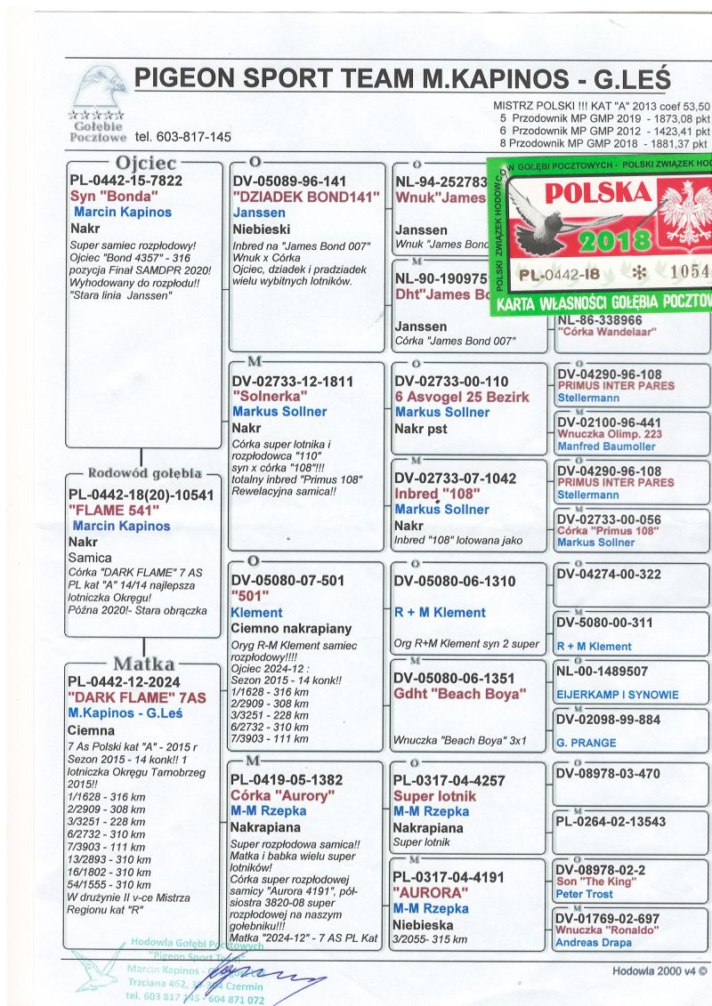 Szczegóły pochodzenia w rodowodzie. Możliwość wysyłki gołębi. Więcej informacji pod nr tel. 504780725