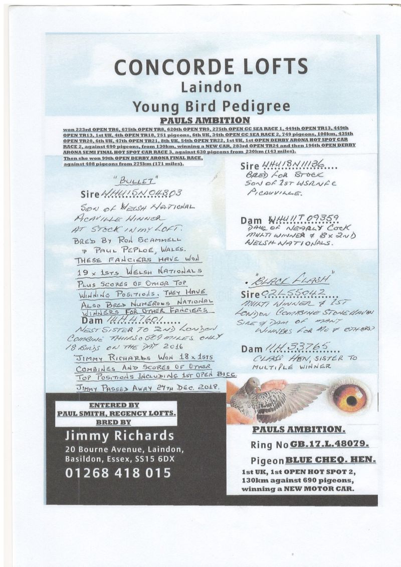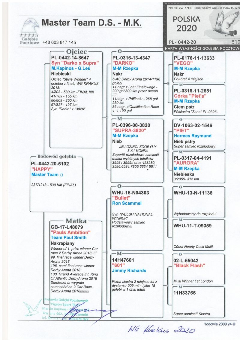 Szczegóły pochodzenia w rodowodzie. Możliwość wysyłki gołębi. Więcej informacji pod nr tel. 504780725