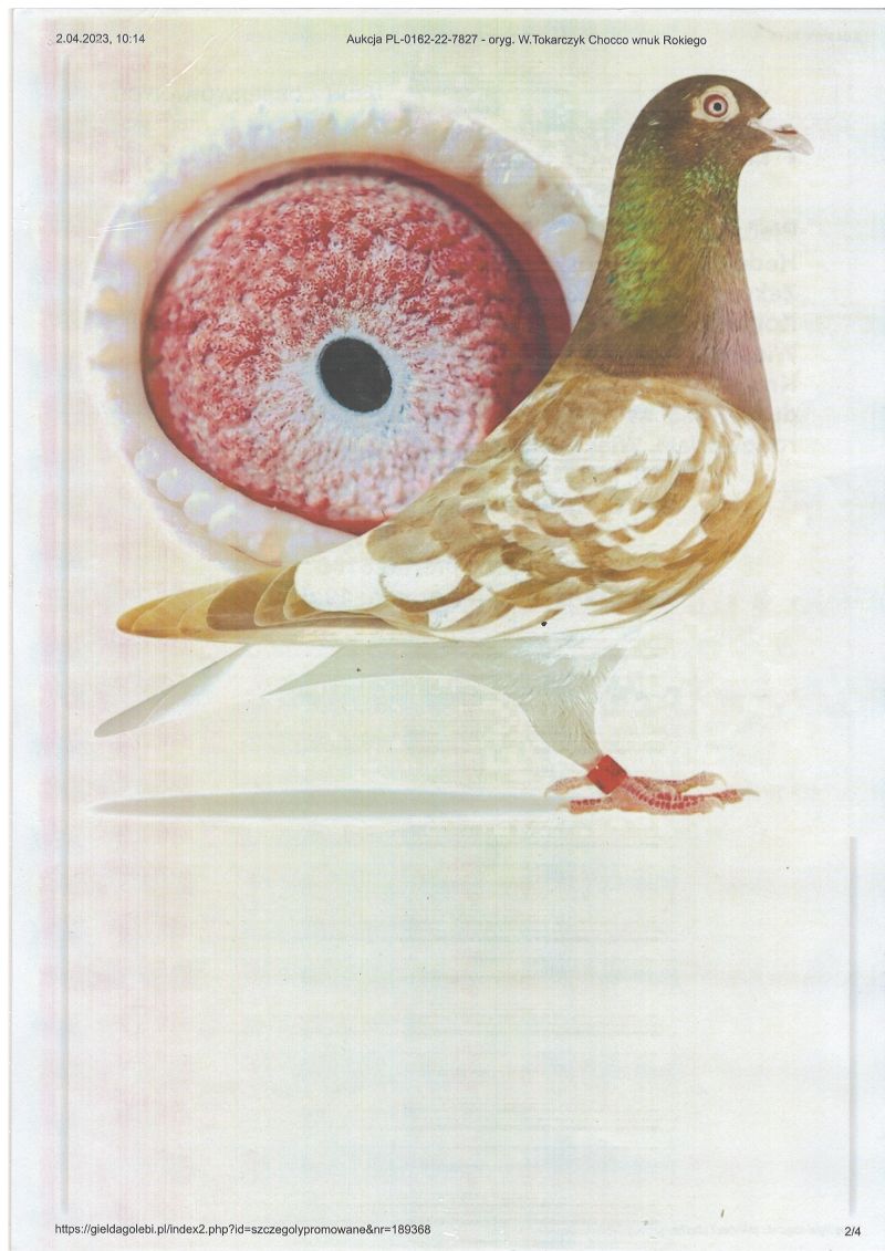 Płeć: samica Hodowca - rasa: Pigeon Sport J.S. Zakończenie: 24.04.2026 godz. 20:25