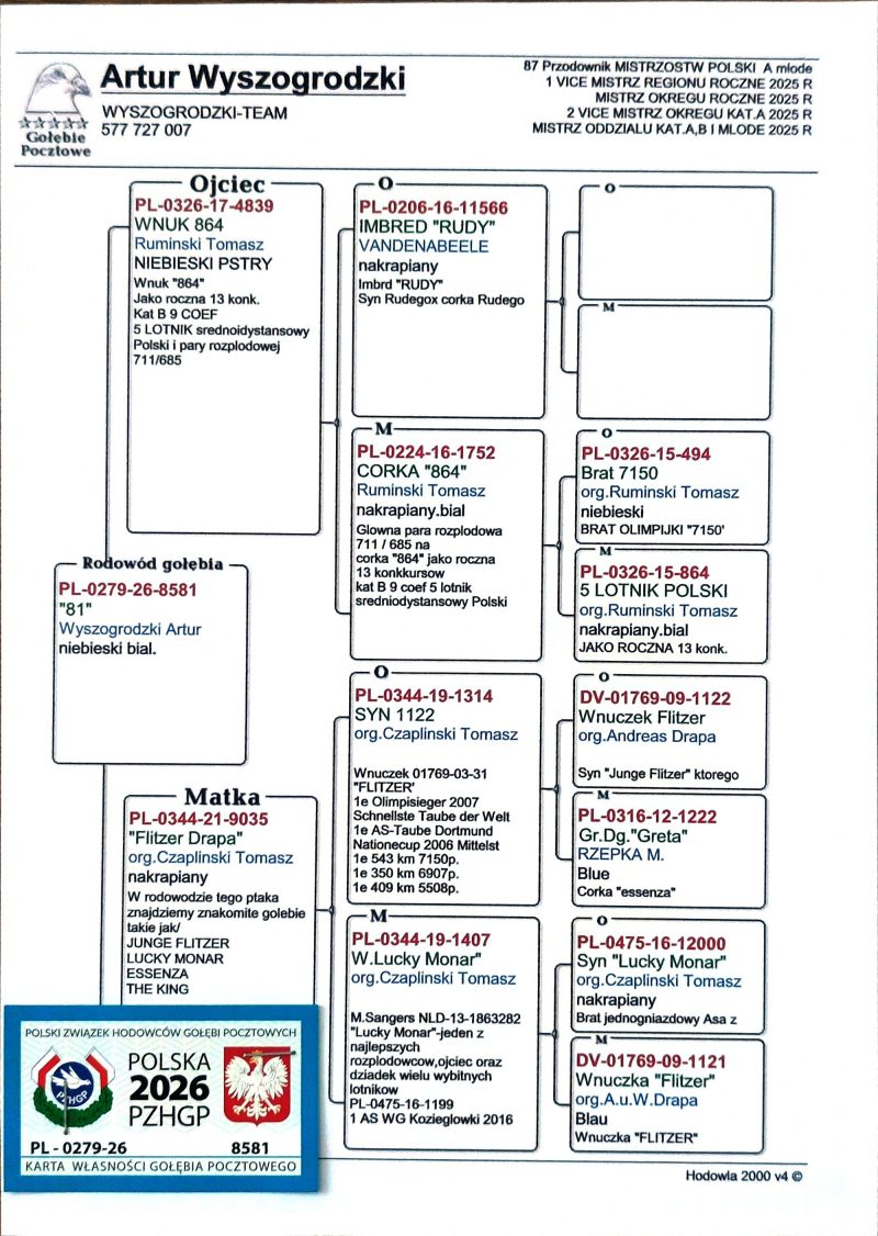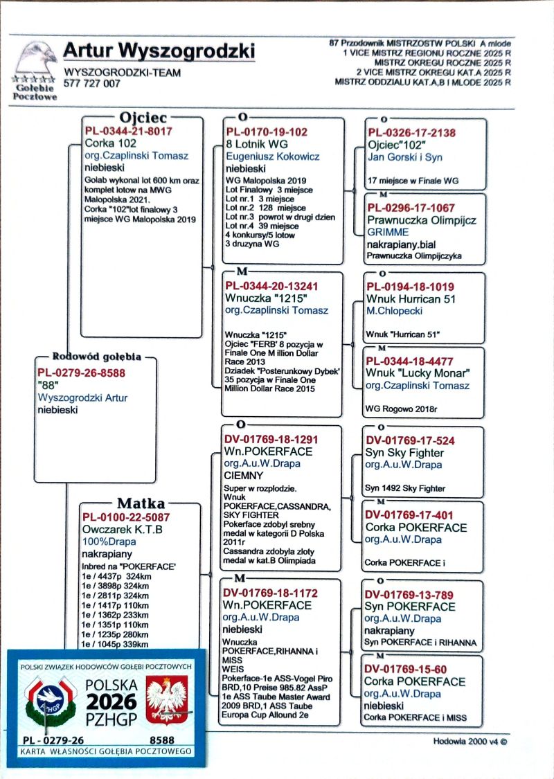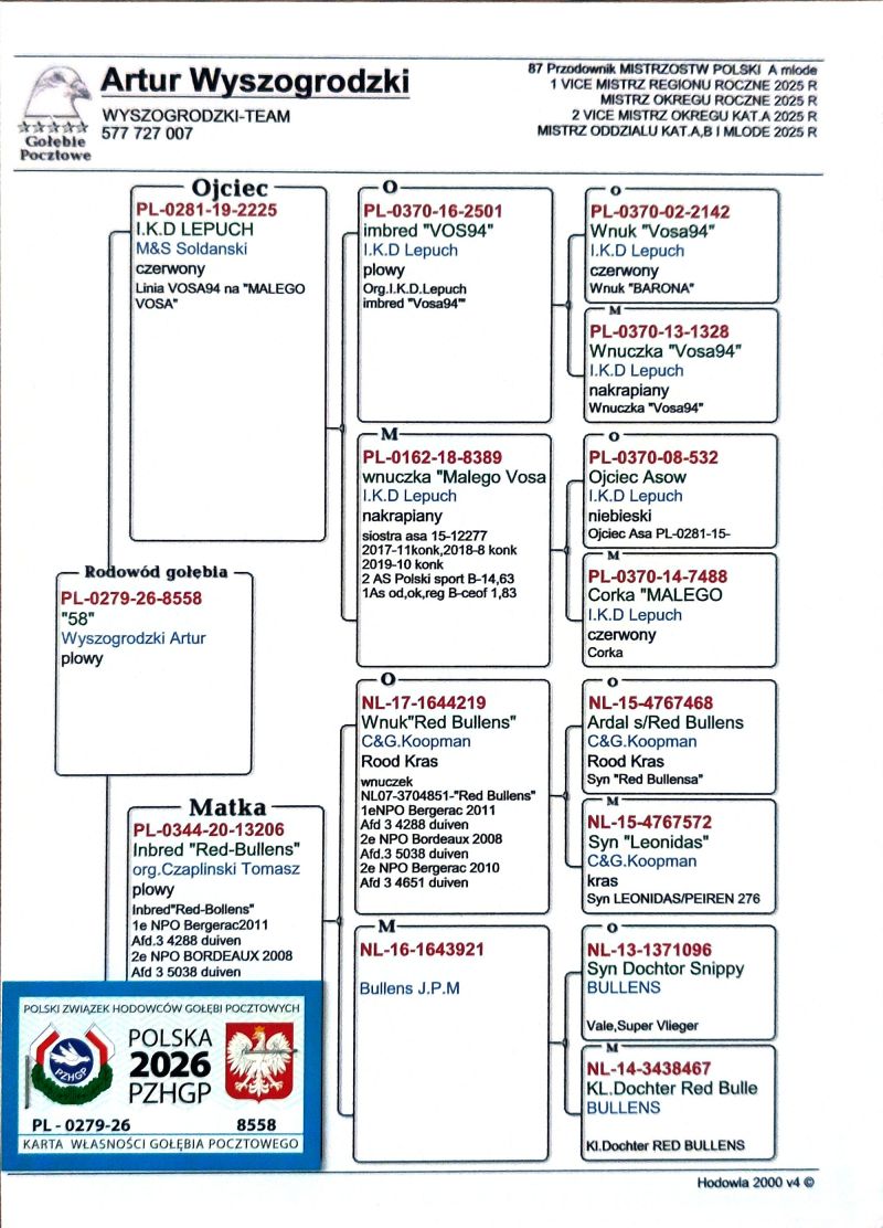 SUPER PAKIET 5 MŁODYCH 2026 ROK DO LOTU, WG *** WIĘCEJ INFORMACJI W RODOWODACH I POD NUMEREM TEL. 577-727-007 ARTUR, 605-061-363 TOMEK *** WYSYŁKA KURIEREM DO 10 SZT, KOSZT 200 ZŁ *** EWENTUALNIE ODBIÓR OSOBISTY W ŁOWICZU BLISKO TRASY A2 *** PO WYLICYTOWANIU WPŁATA NA KONTO BANKOWE LUB BLIKIEM ***