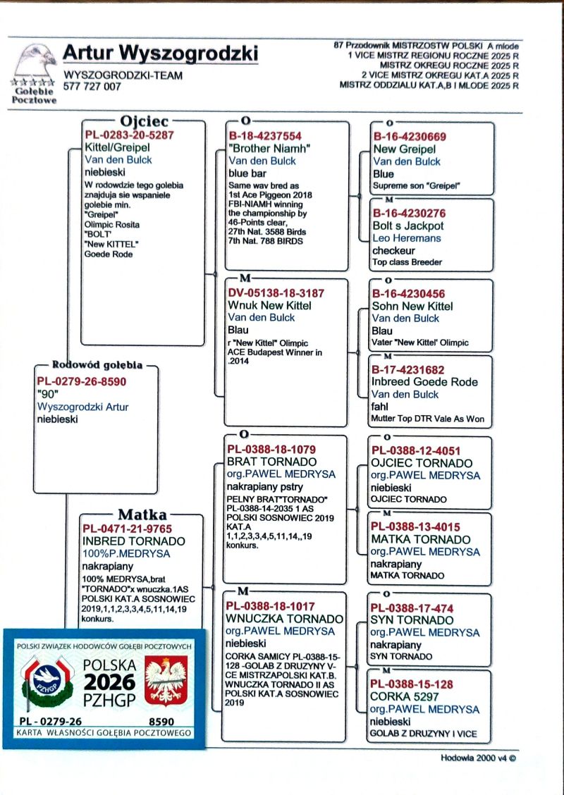 Płeć: młody gołąb Hodowca - rasa: WYSZOGRODZKI TEAM Zakończenie: 25.04.2026 godz. 20:40