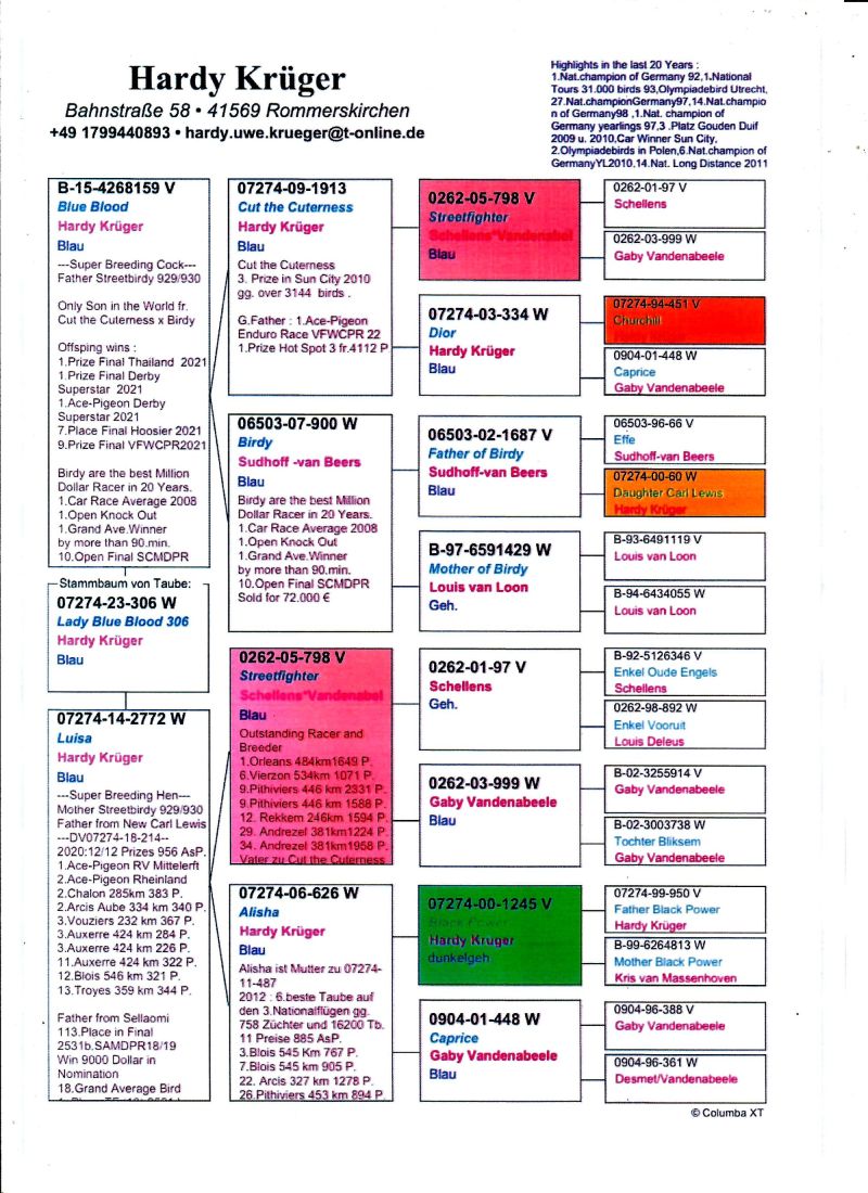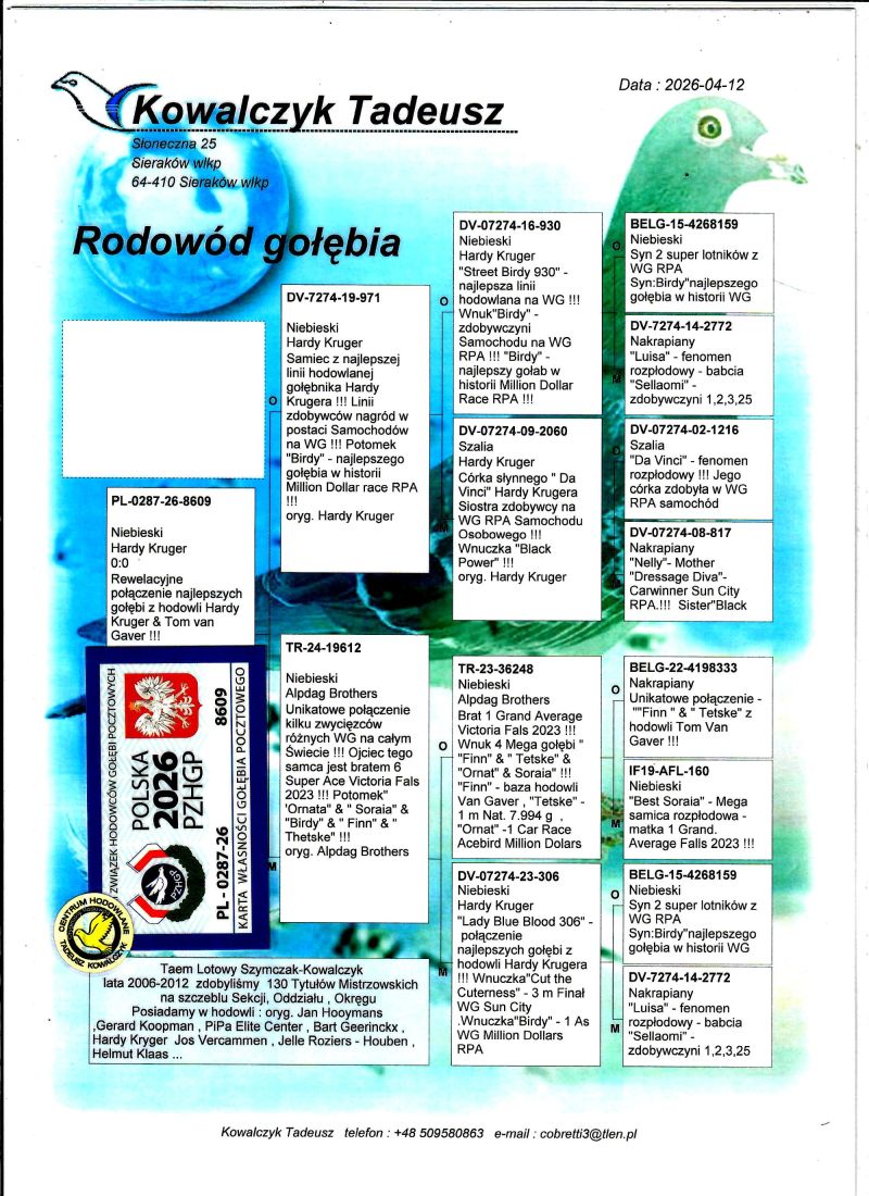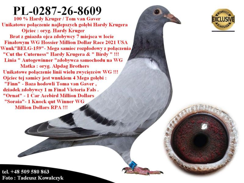 PL-0287-26-8609 Potomek najlepszych gołębi z hodowli Hardy Kruger & linia""Ornat"