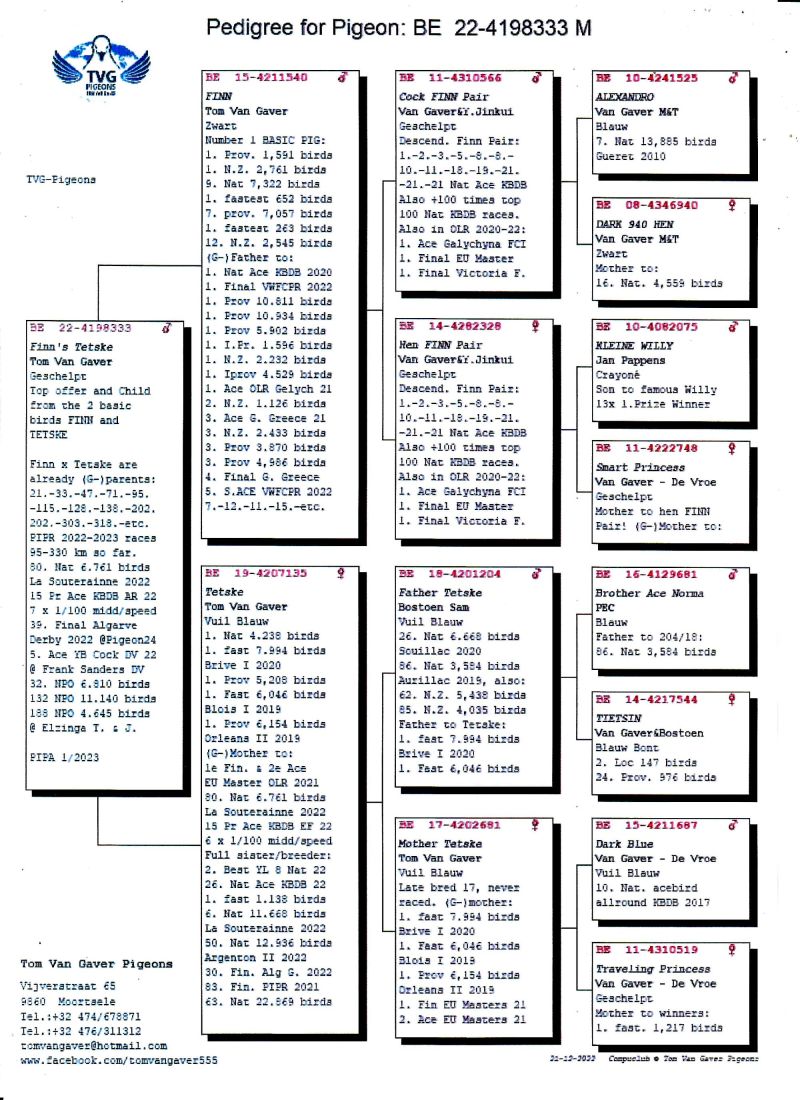 AUKCJA PROMOCYJNA (Cena obowiązuje wyłącznie na tej aukcji) Profesjonalna hodowla z wieloletnim doświadczeniem, posiadająca w swoim stadzie materiał najwyższej światowej klasy, wywodzący się od takich hodowców jak: Jan Hooymans, Gerard Koopman, Mike Ganus, Tjeerd & Jouke Elzinga, Gino Clicque, Jos Vercammen, Jelle Roziers, Bart Geerinckx, Batenburg – v/d Merwe, Altmiks – Pigeons, Jo & Florian Hendriks, Kornelis Winner Loft – linia „Romario”, W & F Ebben, Bert Braspenning, Dirk van den Bulck, Peter v/d Merwe, Jan van de Pasch, Van Elsacker-Jepsen, Roger Desmet – Matthijs, Arie Dijkstra, Leo Heremans, Pieter Veenstra, Gaby Vandenabeele, Karl-Heinz Wichert, Hardy Kruger, Helmut & Alfons Klaas, Gebr. Janssen. Najwyższej klasy materiał hodowlany – najlepsze linie danych Hodowców. Wszystkie wylicytowane gołębie będą dostarczane firmą kurierską.