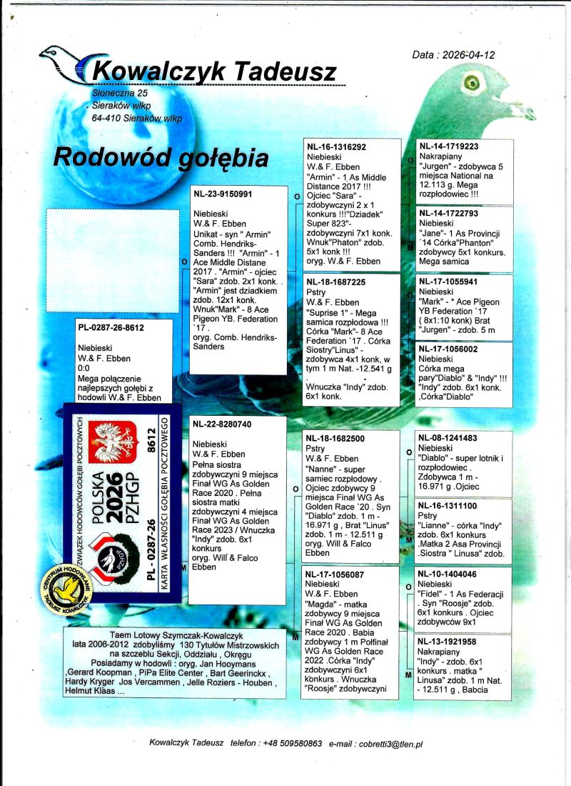 PL-0287-26-8612 Mega połączenie najlepszej linii hodowli W.& F. Ebben