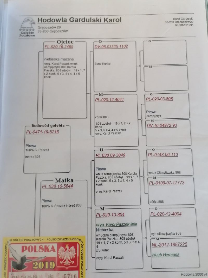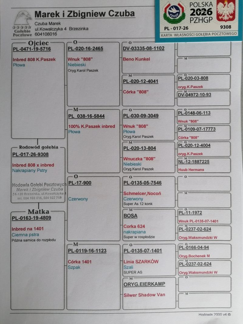Płeć: młody gołąb Hodowca - rasa: Oryg Czuba Marek Zakończenie: 4.05.2026 godz. 20:10